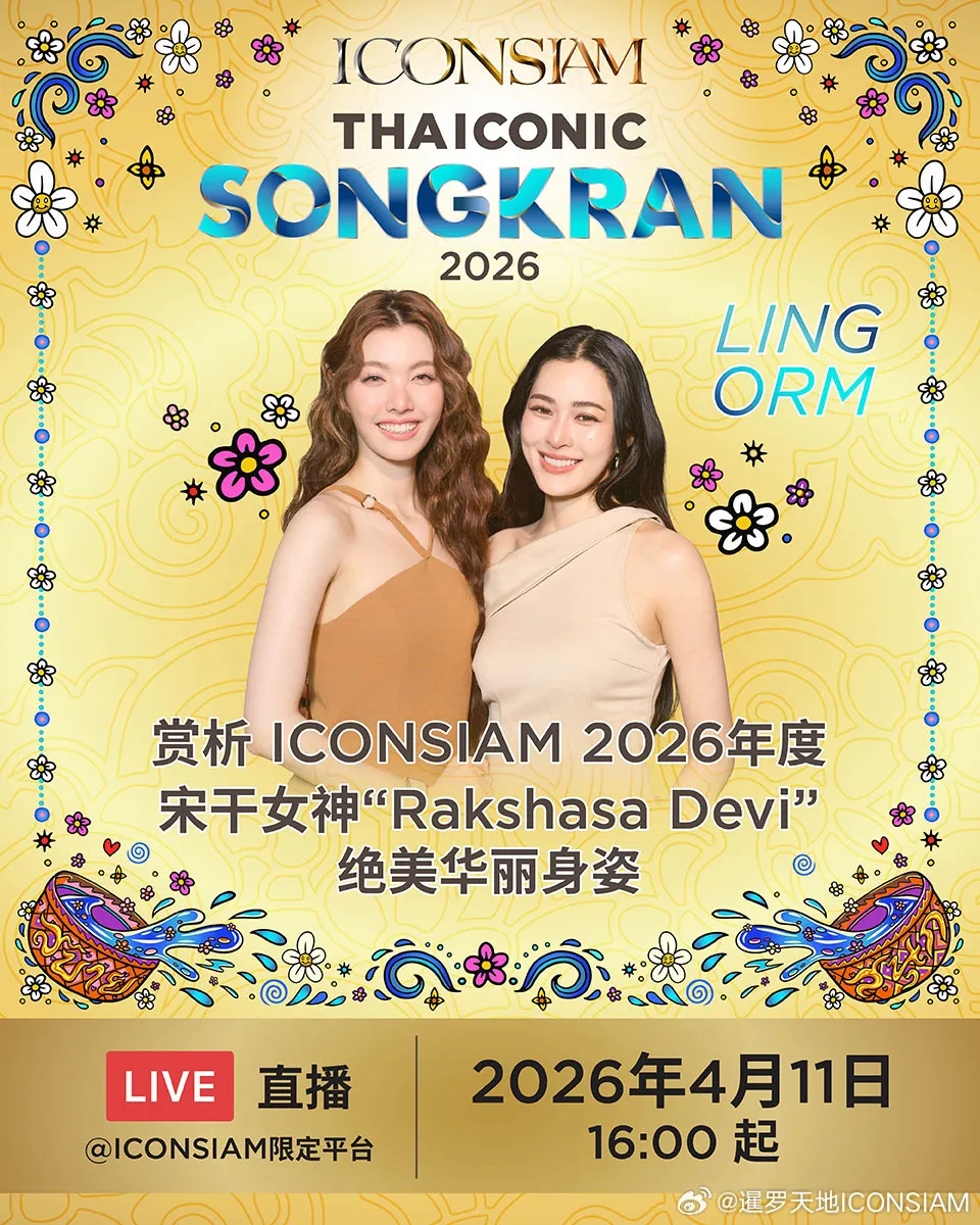 4月11日,暹罗天地ICONSIAM率先迎来重磅阵容,知名女演员Lingling Kwong(邝玲玲)与Orm Kornnaphat组成的LingOrm CP,以宋干女神的姿态惊艳登场,为整场节庆拉开序幕.