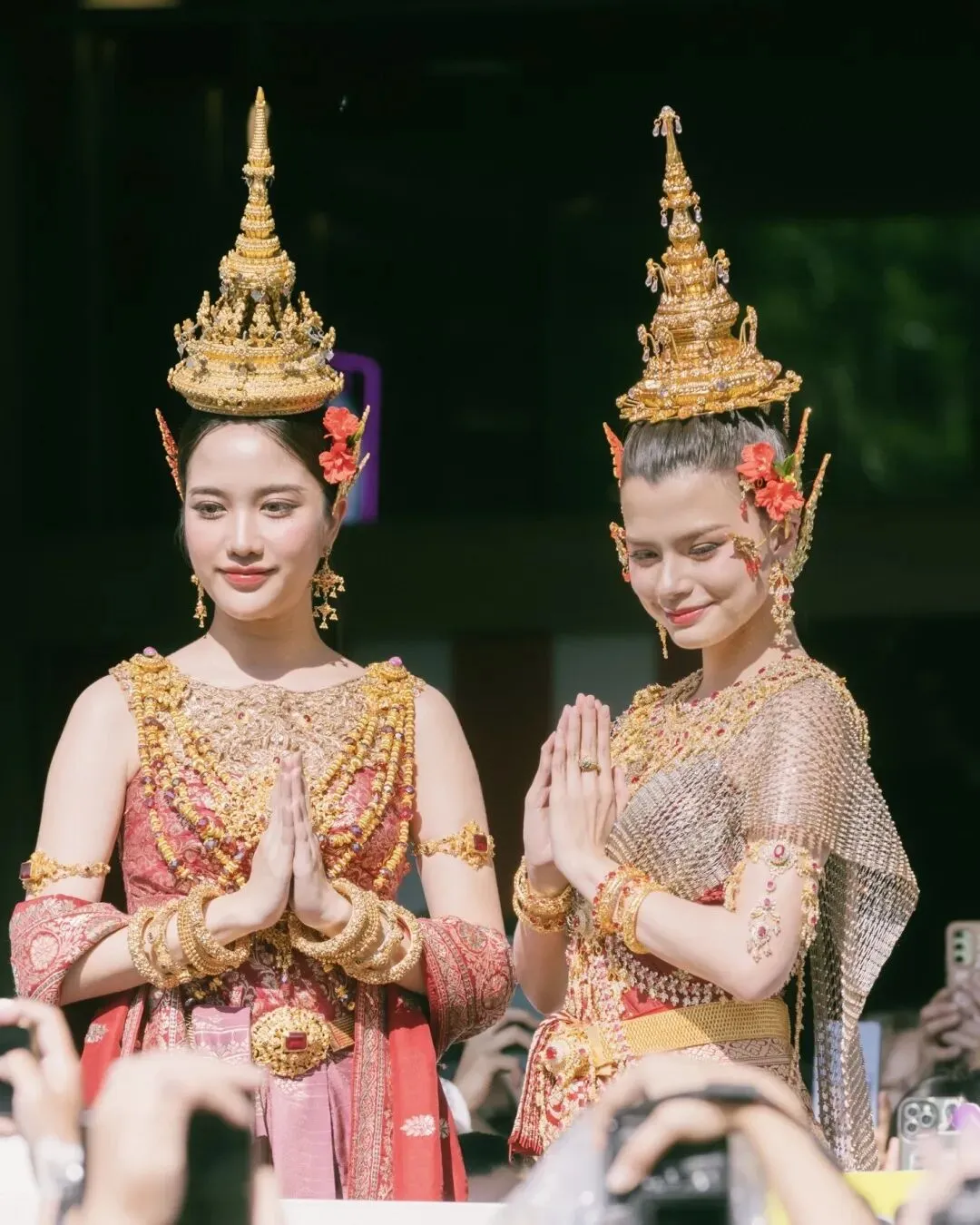 2025年,顶流CP Freen与Becky携手亮相CentralWorld,身着红色泰装共乘花车参与巡游,超高颜值与甜蜜互动席卷全网,成为当年宋干节最具话题度的亮点瞬间。
