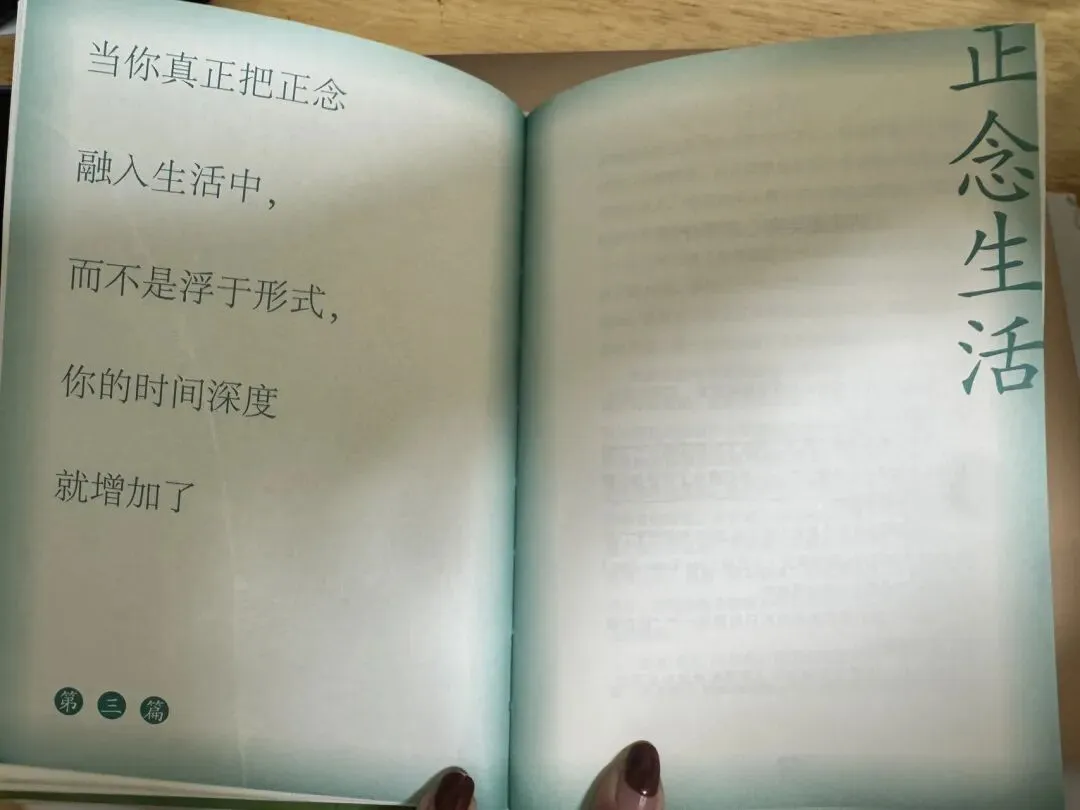 随着阅历增长,再加上老师文字的点醒,希望自己越来越能在日常里觉察情绪、稳住内心,不再那么容易被外界牵着走。老师的话,让正念不再是抽象的概念,而是可以落地、可以践行、可以一天天变好的生活方式。