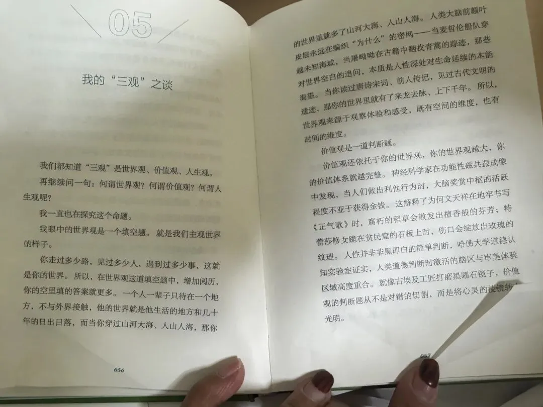 你走过多少路,见过多少人,经历多少事,就是你的世界观。世界不是别人口中的样子,而是你亲眼看见、亲身走过、真心感受过的样子。这本书让我更加坚定:要多去拓展生命的宽度与厚度,去见大山大海,去遇人山人海,去经历、去体验、去成长。眼界越宽,心就越宽。