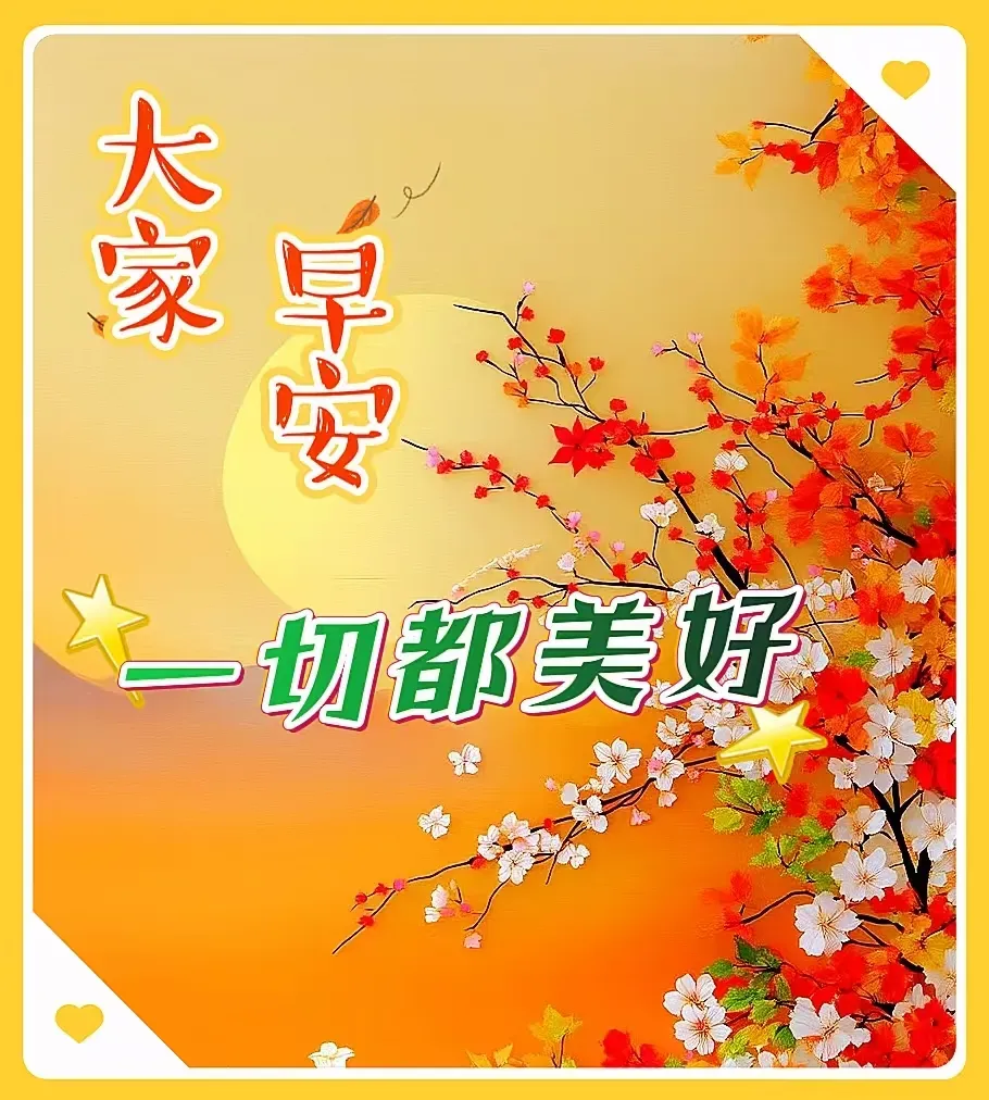 🌞醒来问声好,祝福要趁早,早餐要吃饱,衣帽穿戴好,出门开心笑,踏过幸福桥,老友一见面,忙把平安道,祝你心情妙,老年鸿运高!早安!❤️🙂☕️