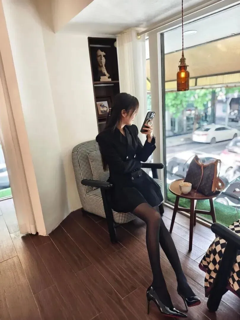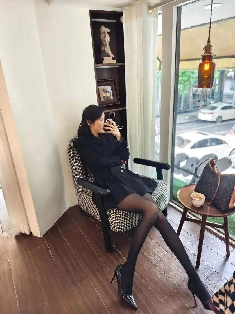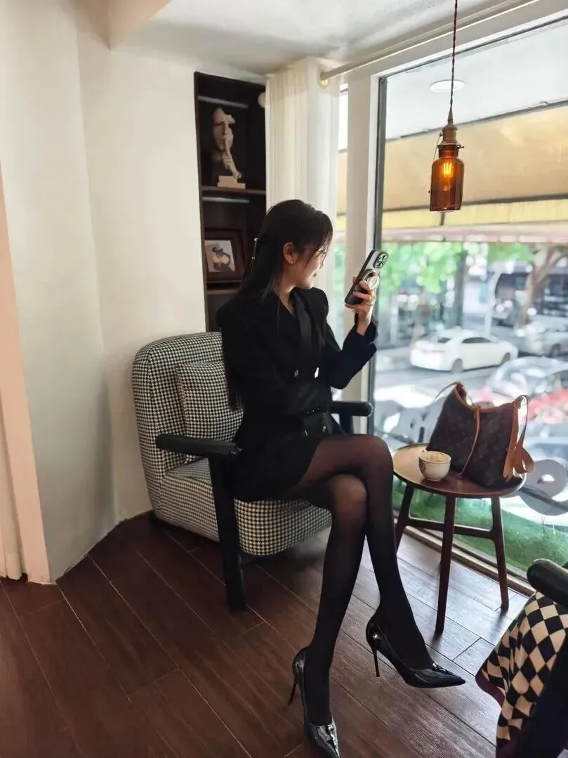 周一再说。周一总是需要一定的仪式感来开启一周的忙碌。她身着剪裁得体、穿着合体的黑色西装裙,系好细长的高跟鞋,立在落地窗外一动不动的样子立刻就显现出干练的感觉了。我偷偷地观察过裙子的裙摆弧度刚好到达膝盖处,并不是太短,但是又不会影响到小腿部分的显示。说实话,这种经典款真的永不过时,而且特别撑气场。有些时候觉得,一上午的穿衣仿佛给一个星期定下了基调,穿得好,整个人就会精神焕发。