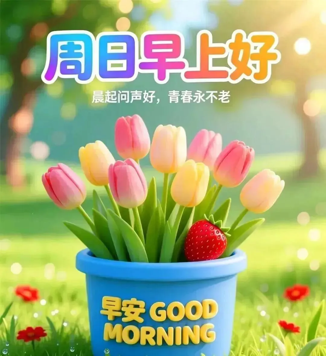 晨光拂面,早安问候,愿你全天轻松愉快,万事皆有期待,健康守护左右,平安陪在左右,幸福常伴长久。周日吉祥!🌹🌺🙏❤️🍎