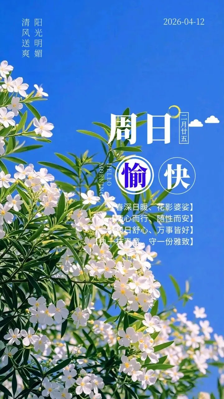 当前位置:首页>美女资讯>4月12日 周日愉快图片 周日早安祝福问候图片大全