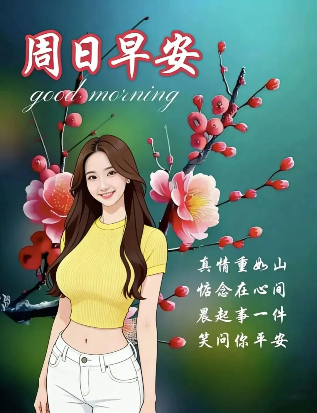 新的一天又来到;真诚问声早上好!愿你生活中不忘亲情,牵挂中不忘友情,忙碌中保重身体,快乐中享受人生。周日早上好!