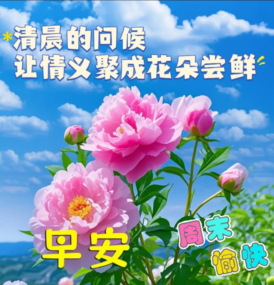 10. 问候是快乐的晨曲🎵,祝福是永远的心声🗣,用感恩的心💕,致谢我人生路上有缘的你👫:幸福😄、快乐😄、健康💪、平安🙏。家人们周末早上好!