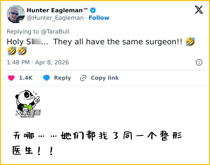 “天哪,我分不清她们谁是谁,”一位用户写道。另一位说:“这明显是做了糟糕的整形手术。”