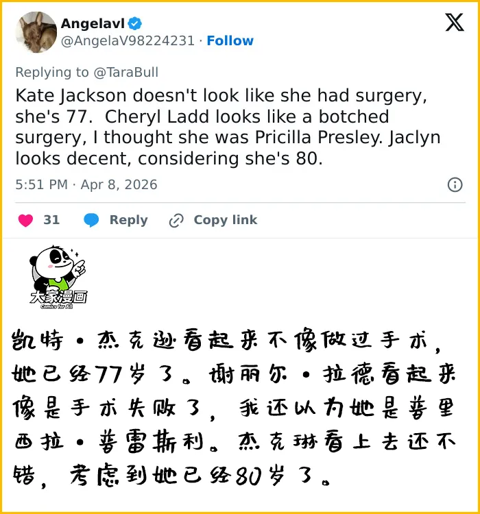 《霹雳娇娃》50周年重聚惹议!三位七旬女神被疑“动脸”,网友怒批:不如优雅老去.