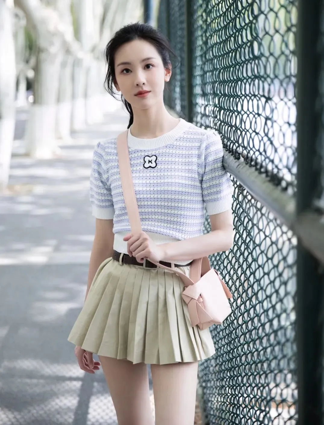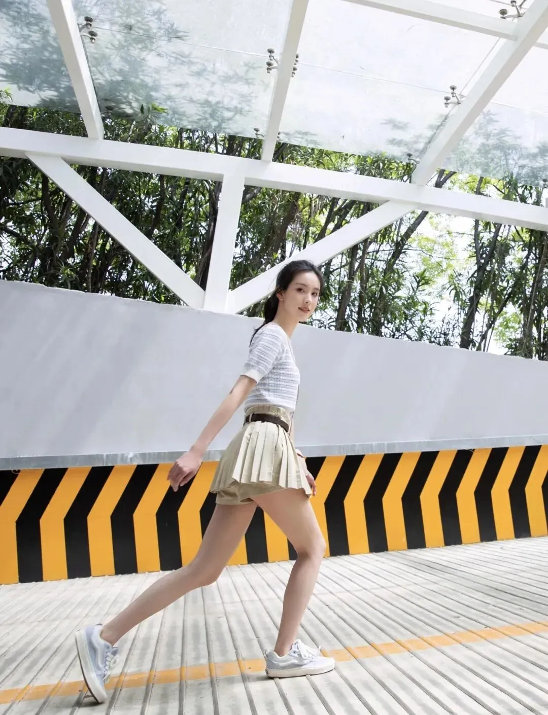 先看这套活力休闲风!蓝白条纹短上衣+卡其色百褶裙裤,V领设计超显脸小,还能悄悄拉长脖颈线条,短款版型直接拉高腰线,秒变三七分身材!搭配同色系Vans板鞋,青春感直接拉满,日常出街、和朋友约会穿,清爽又减龄,小个子姐妹也能轻松驾驭