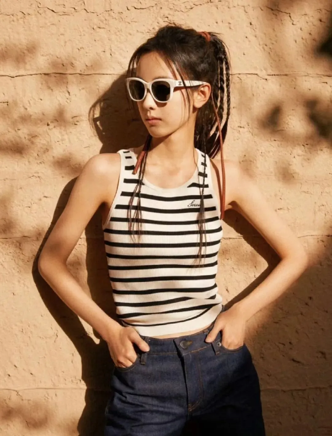 谁能拒绝这套美式休闲风!黑白条纹工字背心+深蓝色阔腿牛仔裤,辣妹感直接拉满!修身背心勾勒身材线条,阔腿裤藏住腿型,秒变大长腿,搭配经典Vans板鞋,又酷又甜!编发造型更是加分,日常出街、探店拍照,出片率100%!
