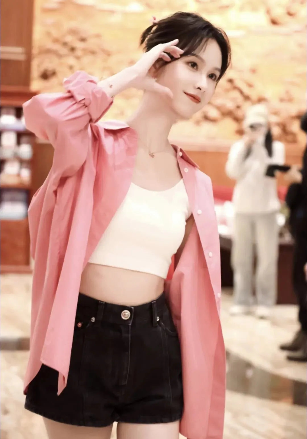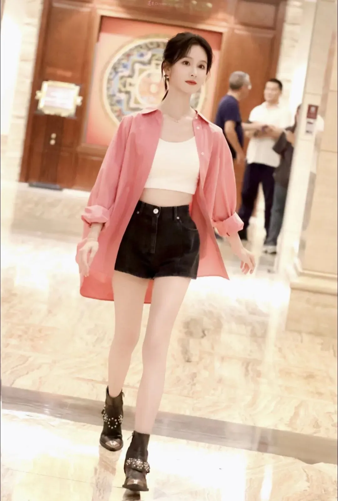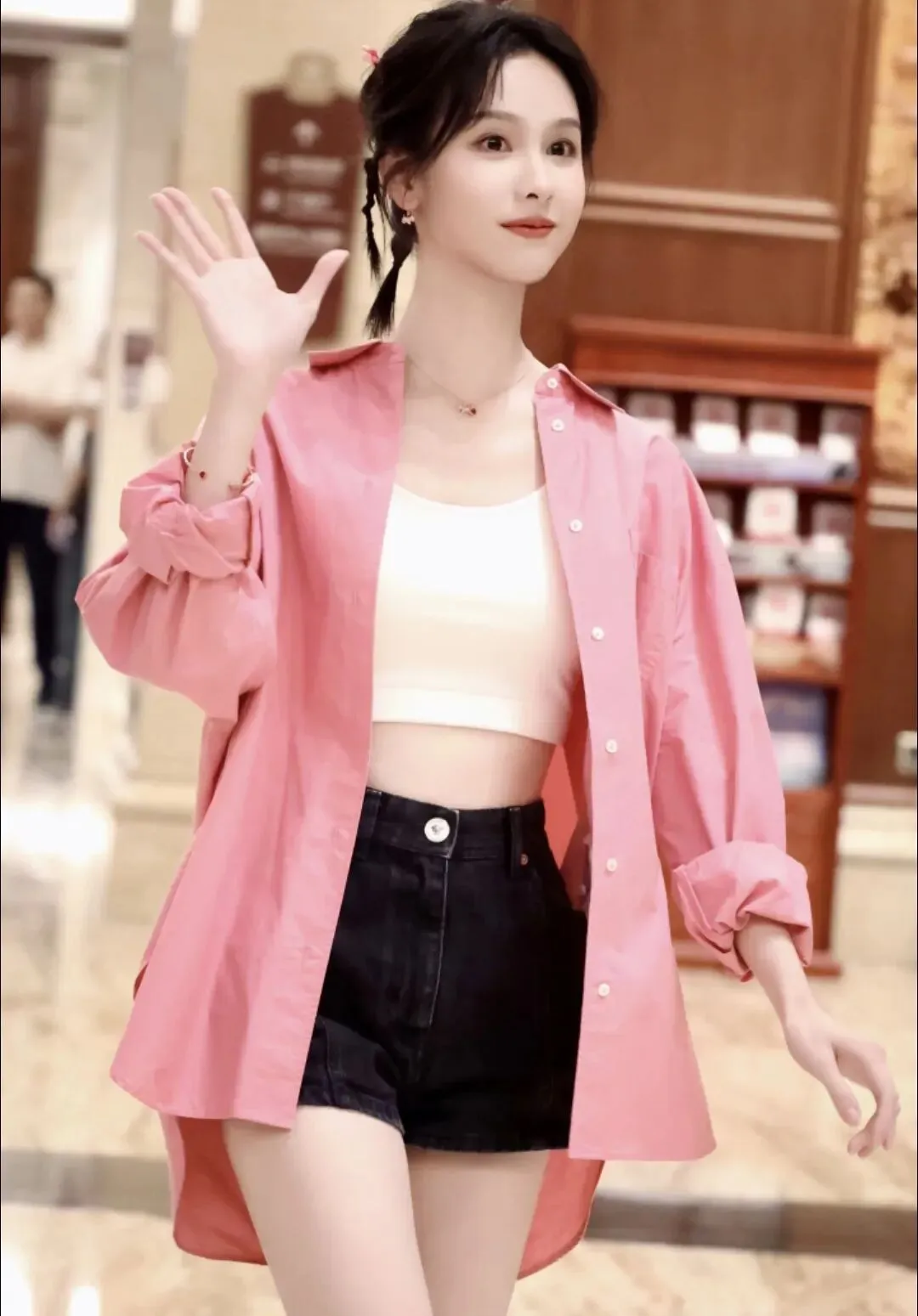 这套松弛感穿搭太适合夏天了!粉色宽松衬衫+白色短款内搭+黑色牛仔短裤,慵懒又随性!oversize衬衫防晒又遮肉,短内搭露出小蛮腰,甜酷感拉满,搭配铆钉短靴,又飒又美!日常出街、通勤穿,舒适又时髦,懒人姐妹直接抄!