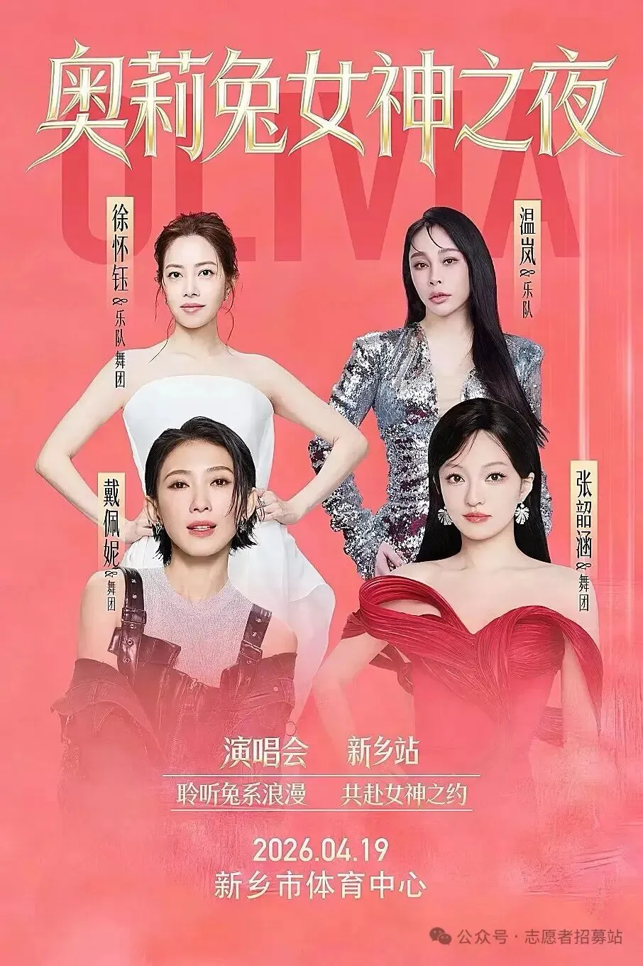 当前位置:首页>美女资讯>张韶涵/温岚/徐怀钰/戴佩妮…奥莉兔女神之夜演唱会志愿者招募
