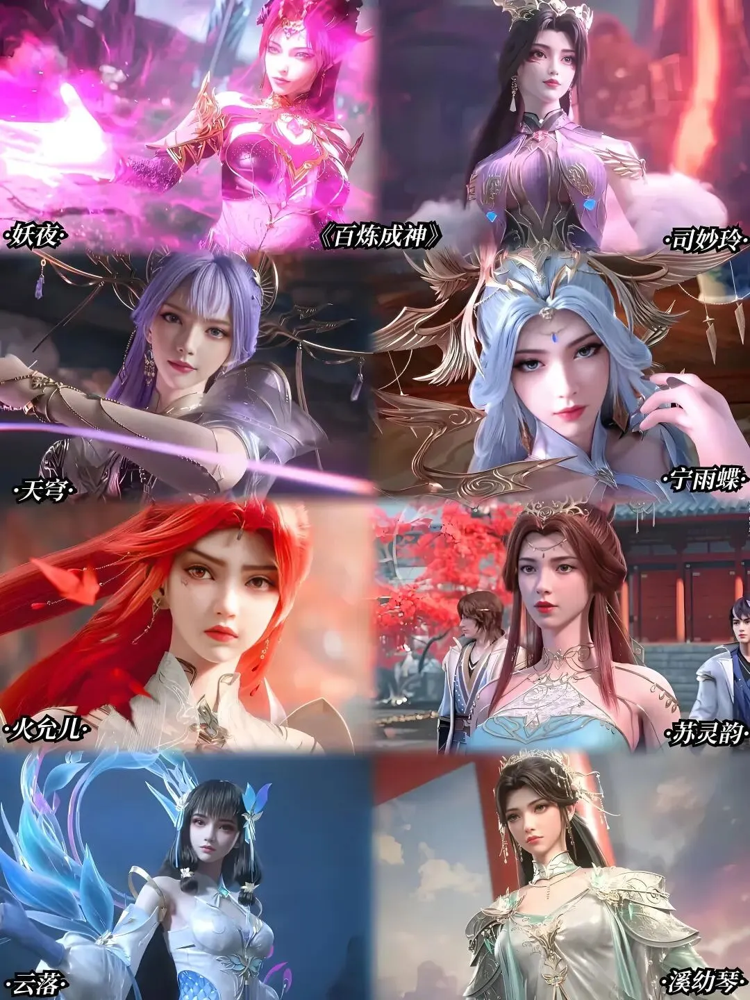 《百炼成神》里的8位女神,每一位都有自己的独特魅力: