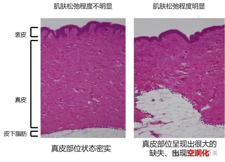 大家都知道,衰老的本质是细胞衰老。随着年龄增长,皮肤代谢能力变差,真皮组织会逐渐出现缺失,使皮肤密度降低、内部变得松散稀疏并失去弹力