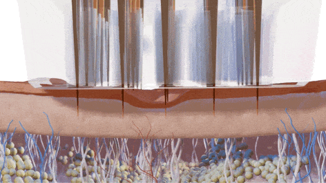 微针可以在毛囊深度释放能量,使胶原纤维受热收缩并产生更多弹力蛋白。