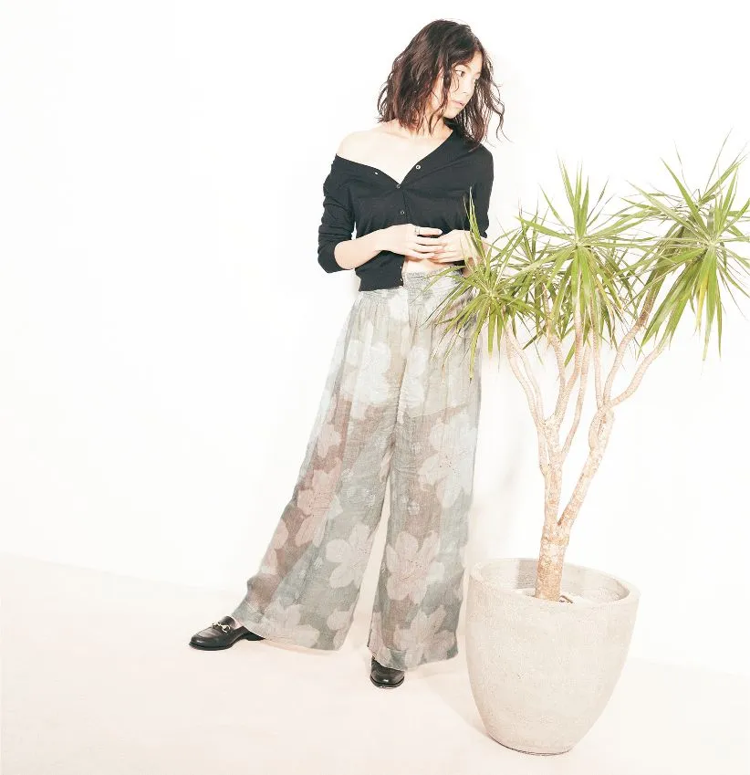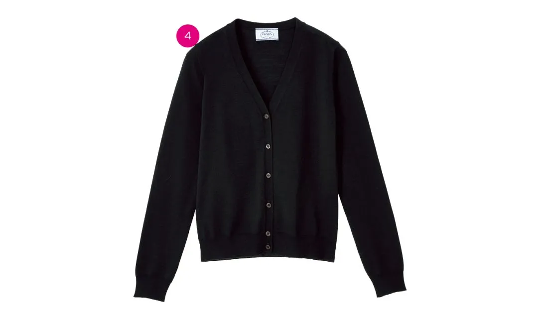 黑色的开襟毛衣和具有透明感的裤子完美统一,