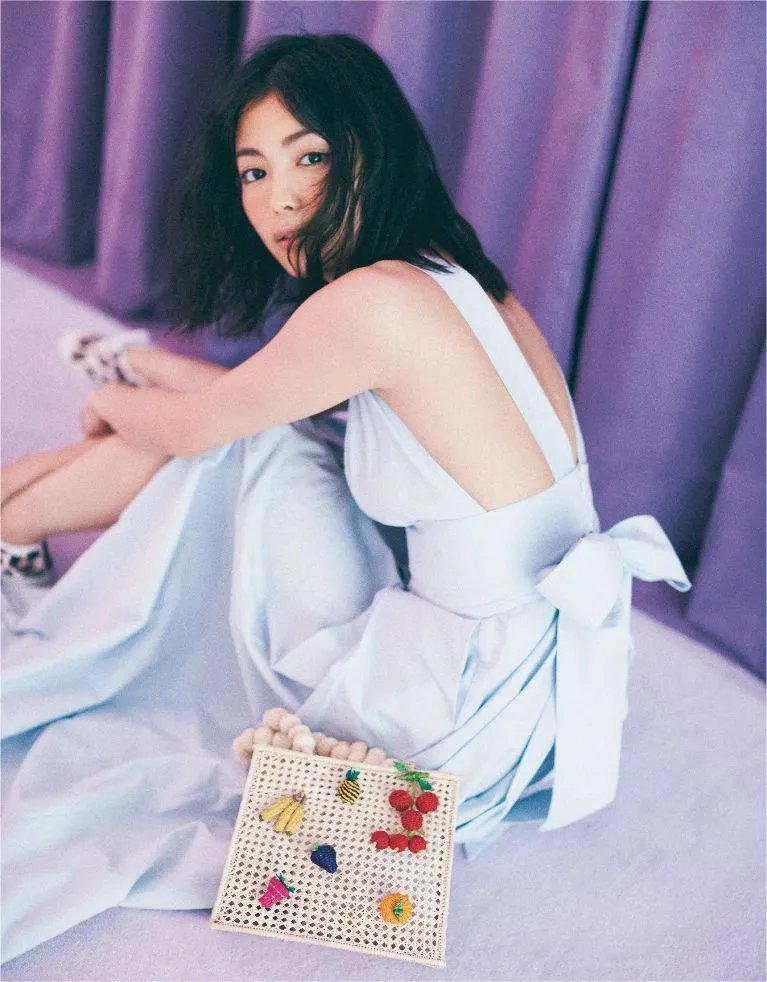 但连衣裙巧妙的蝴蝶结设计在此时更显出众,