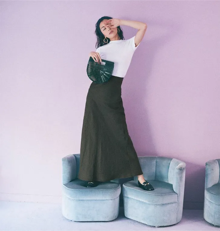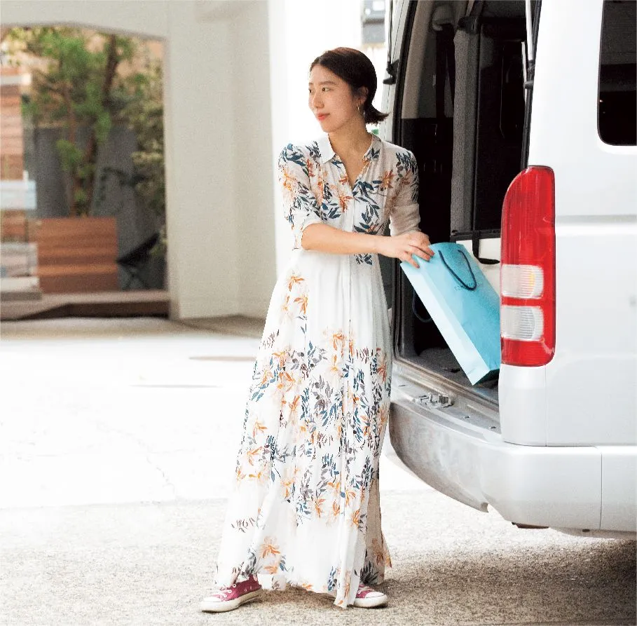 一条印花长裙搭配休闲帆布鞋就恰到好处,