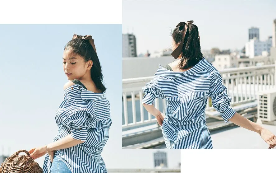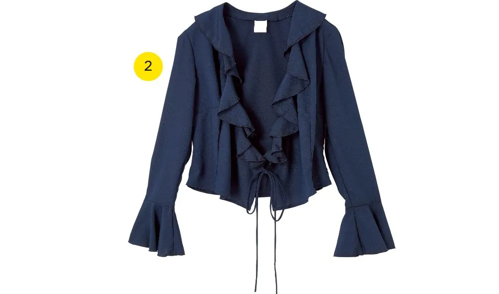 甜美的头饰与衬衫上的蝴蝶结相呼应,