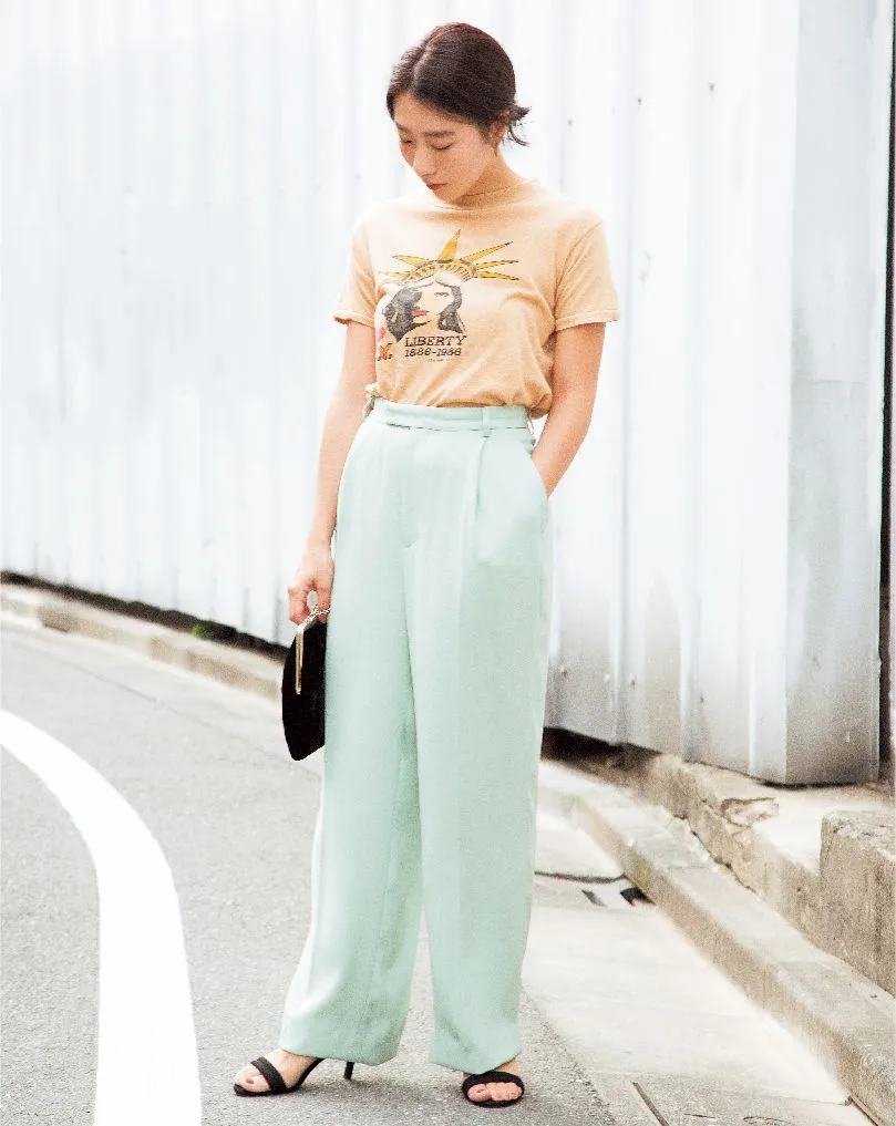 极具休闲感的阔腿裤与简洁的白T恤是最佳搭档,