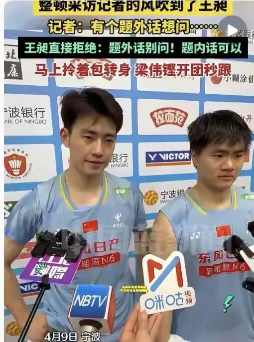 4月9日,刷到王昶赛后采访怒怼记者,记者看他戴着婚戒,小心翼翼的问:“有个题外话想问”王昶毫不犹豫的拒绝:“题外话别问!题内话可以。”马上拎着包转身离开,作为运动员他只想谈比赛,并不想用私人生活博流量,更不想把自己婚姻的话题当作记者的八卦新闻,只想安心过好和钱天一两人的小日子。