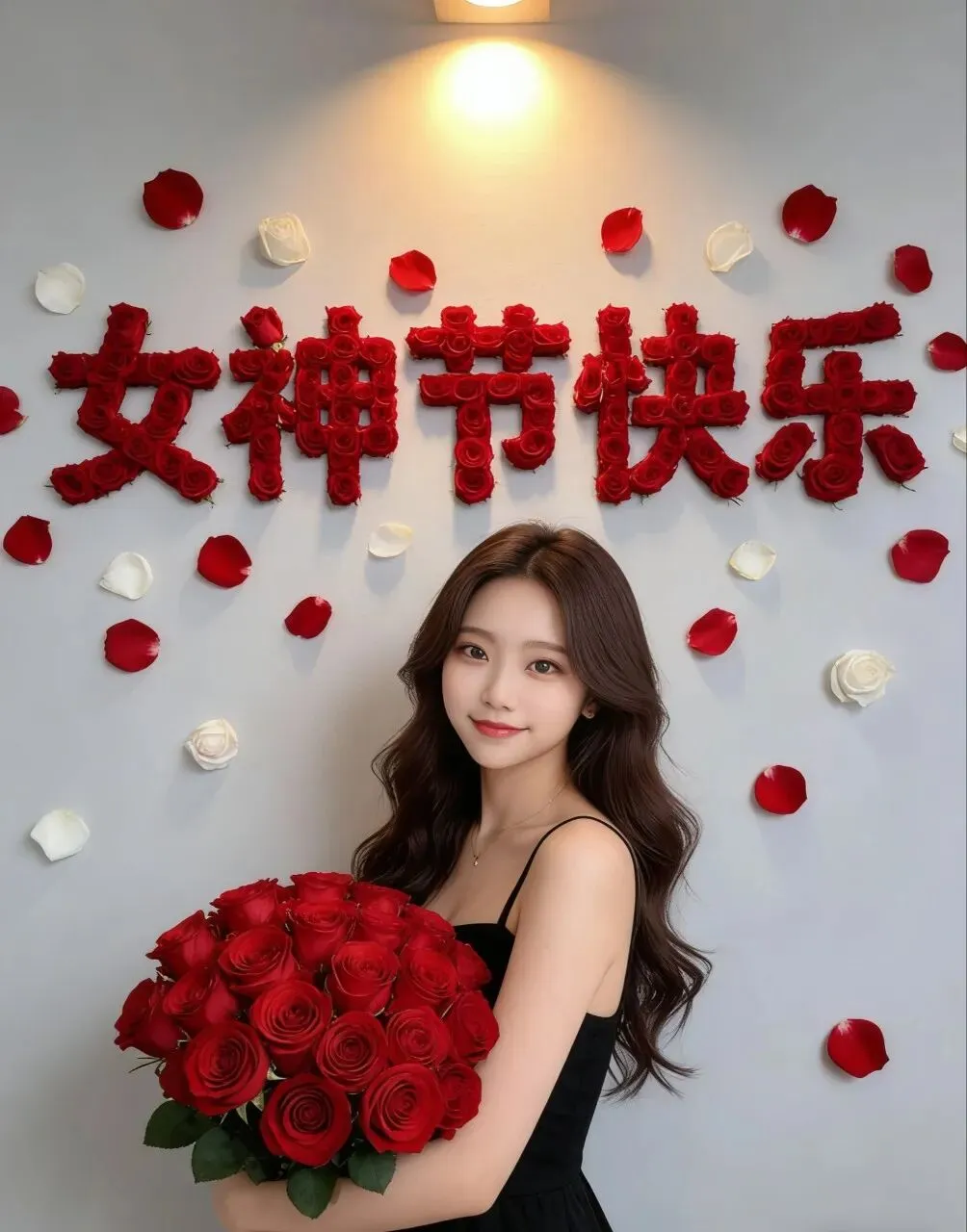 当玫瑰在墙上拼成“女神节快乐”,当鲜花在手中轻晃,像一颗被定格的心动注脚,每一划都在诉说:有些仪式感,是为了提醒自己,要好好爱自己;有些温柔,是藏在玫瑰里的浪漫。