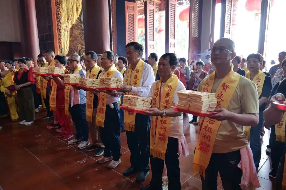上午9时40分许,福建漳州芗城区霞田下妈祖庙苏永宁、杨水寿、柯庆明等率团抵达贤良港天后祖祠。祖祠董事会董事长林自弟对进香团的到来表示热烈欢迎,并陪同进香团向妈祖行庄严的三献礼仪式。