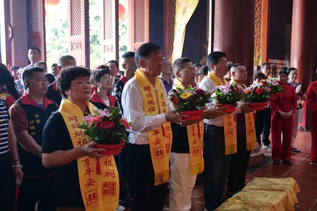 上午11时许,福建漳州高新区上街天后宫主委许其成率团抵达贤良港天后祖祠。祖祠董事会董事长林自弟、副董事长黄金象对进香团的到来表示热烈欢迎,并陪同进香团向妈祖行庄严的三献礼仪式。