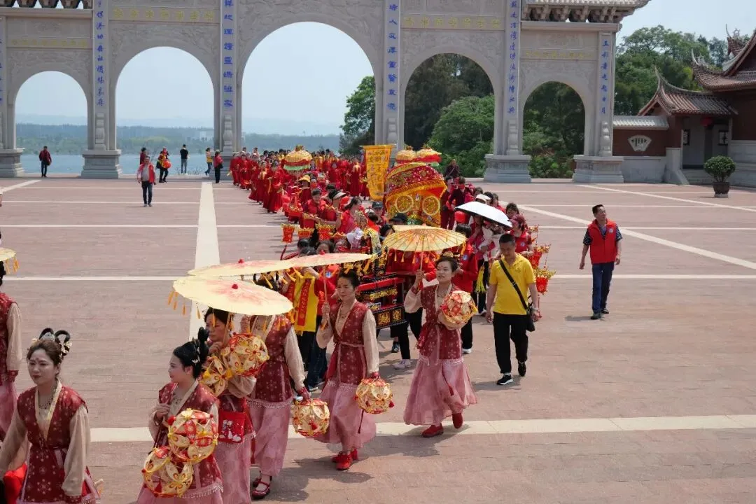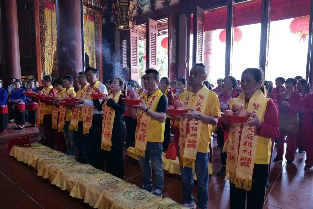 4月12日,福建漳州芗城区霞田下妈祖庙、漳州高新区上街天后宫、莆田涵江天帅府分别组织进香团来贤良港天后祖祠谒祖进香。