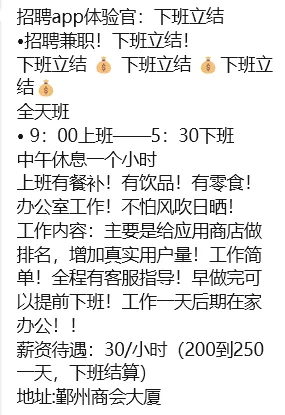 (平台提示:如兼职涉及使用本人银行卡支付,通过银行卡帮忙转账,直接拒绝,请勿参与!若实际工作内容与岗位描述不符合,直接拒绝,请勿参与!若发现实际内容涉及违法,直接拒绝,请勿参与!并立即向平台反馈下架拉黑!)