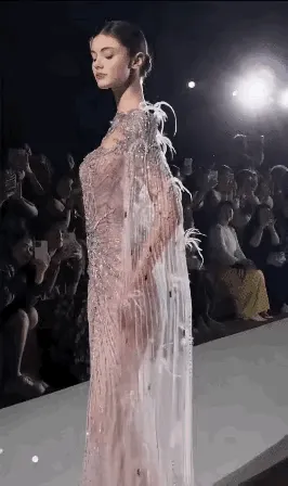 Domi 身上那件粉色鱼尾裙,勾勒出的曲线绝了!在聚光灯下,裙摆每摆动一下都像在放大招。她就这么潇洒地一转身,直接让所有人看傻眼 —— 原来时尚最牛的地方,根本不是衣服有多华丽,而是穿上它的人,敢用自信惊艳全场!