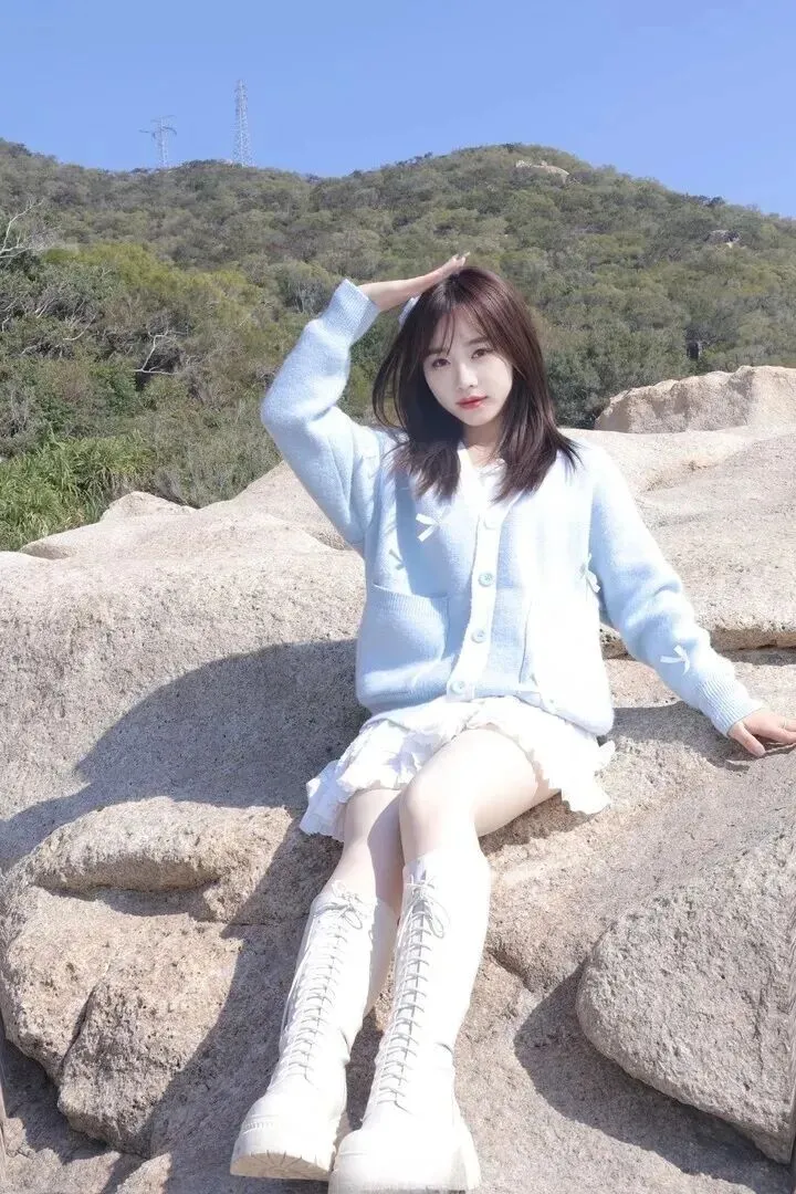 清冷气质风来啦,是属于那些喜爱低调、高雅风格女性的服饰。浅蓝色v领连衣裙加蕾丝内衬,裙摆有三层以上,下摆是蛋糕式的裙子,叠加起来的造型让人感觉繁琐,脚穿高筒靴,也稍微改变了人体的比例。坐于石头的凹陷之处,用双手去触及石头,冰凉之感遍布全身。如果你不讲究穿衣细节,那么这个一键完成的造型就会自带拍照好看的优势,自然就会有范儿。更适合于文艺青年或者习惯独处的时候使用。