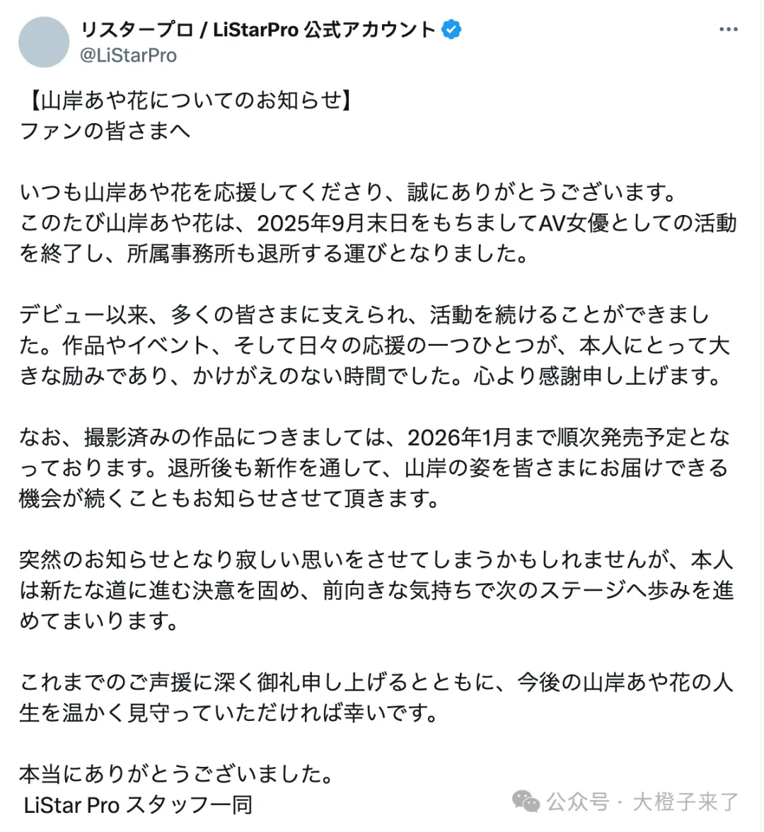 摊牌了,山岸绮花突然宣布引退,辉煌8年生涯落幕!