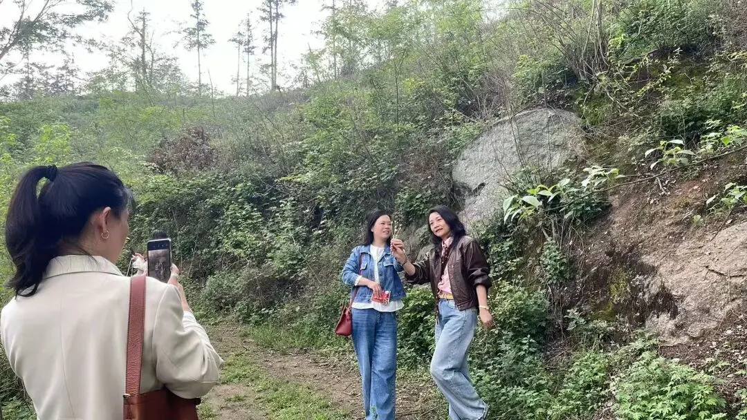 🎯🎯车辆下得山来,折返徒步爬山,走的泥土,丝毫没顾及芳芳的恨天高。她穿的尖高跟和我们同步,刚刚下雨后的泥泞路,有的松软,有偶尔不时一扎一个洞,她也没有一点要我们照顾的意思。芳芳和我们一起说说笑笑,走走停停,那么丝滑顺畅。当然她的招牌特点就是如沐春风的笑容。