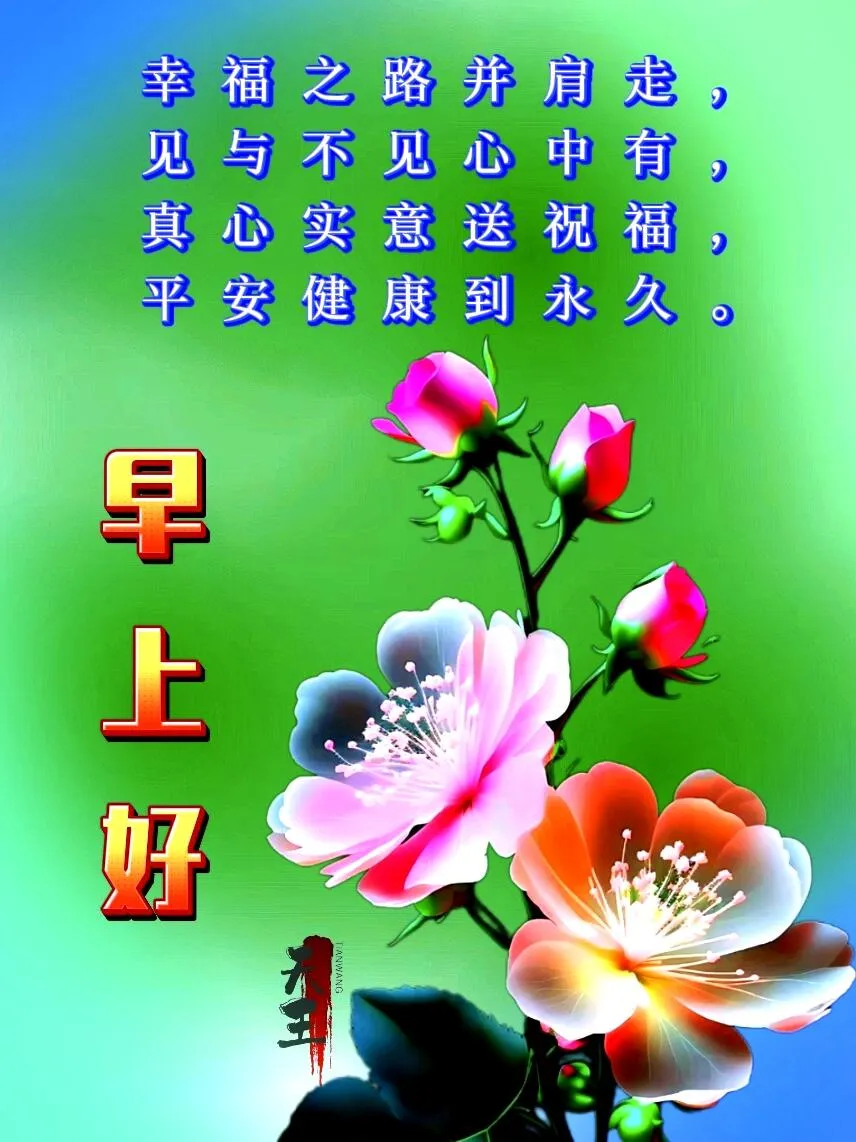一年四季,冷暖交替,每一天的祝福,准时到达。  一份问候,语轻情长, 甜言蜜语不会说,真心实意不会少。愿平安好运相伴,健康快乐每天 ,早上好~