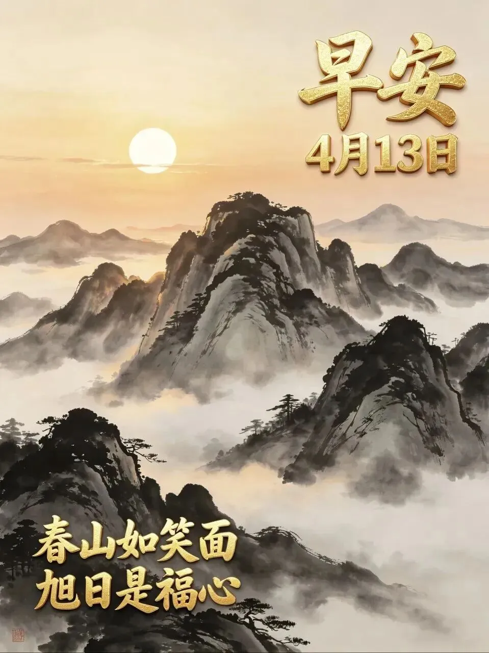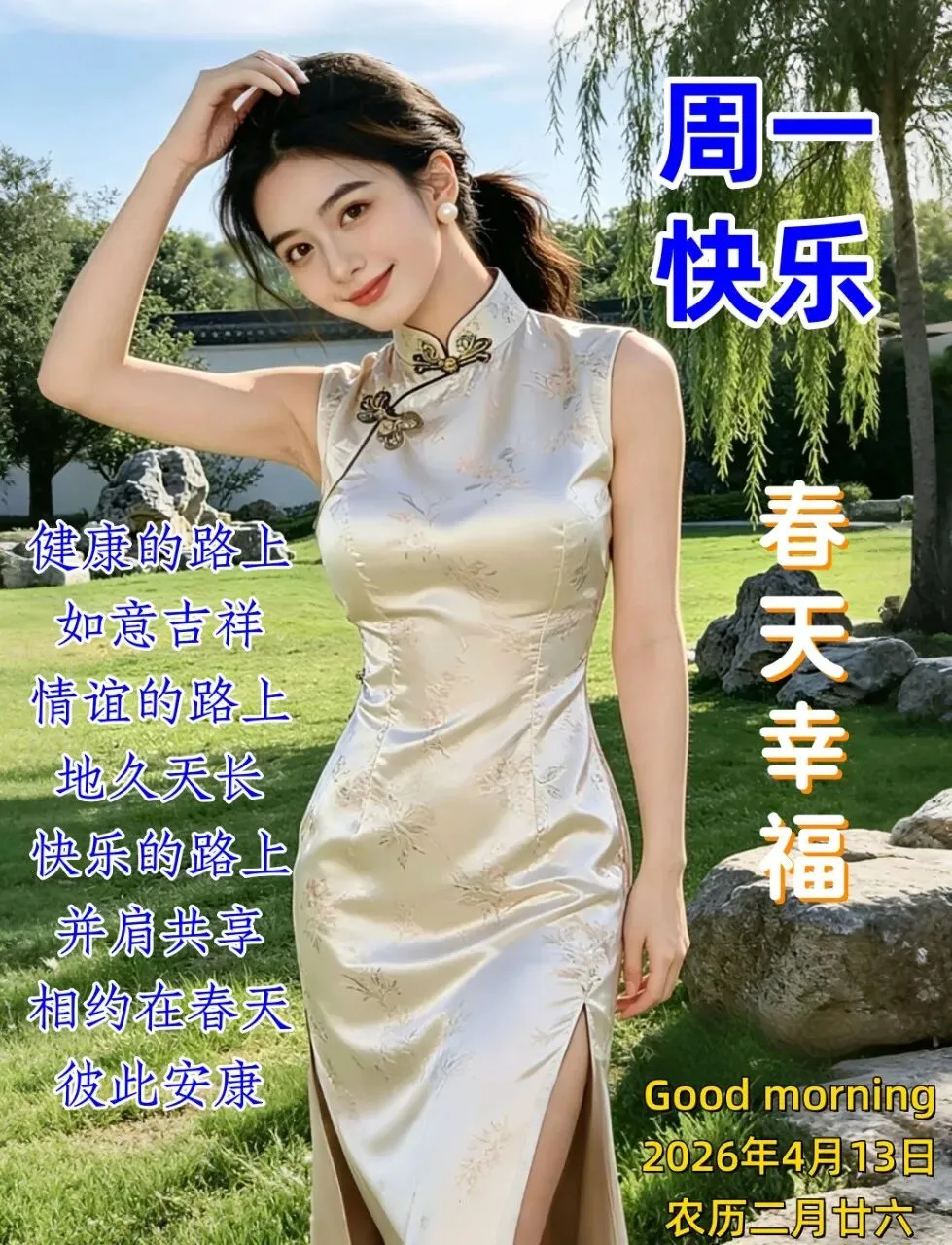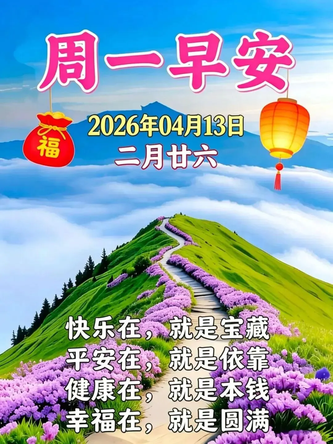 2026年4月13日早安图片,周一愉快,新的一周,愿您多喜乐,常安宁,一生幸福,万事顺遂.