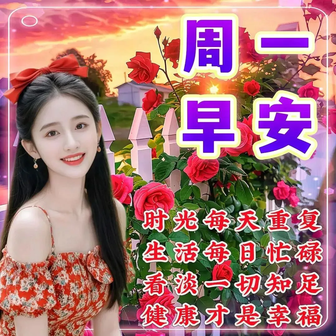 🌞新的一周,新的开始,周一早安!🌹愿各位长辈老友,心态平和,身体安康,🍚三餐有味,四季无忧。🌷少些操劳,多些欢喜,❤️平安相伴每一天,健康幸福永相随。🍎