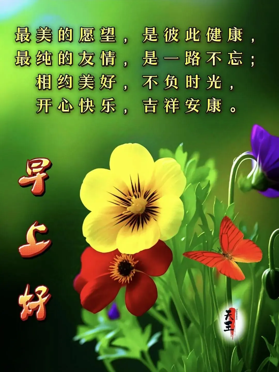 愿你年年常康健,岁岁常欢愉,千般皆如愿,万事定称心,所有好运与你不期而遇。早上好!🌹🌺🤝🙏🌞