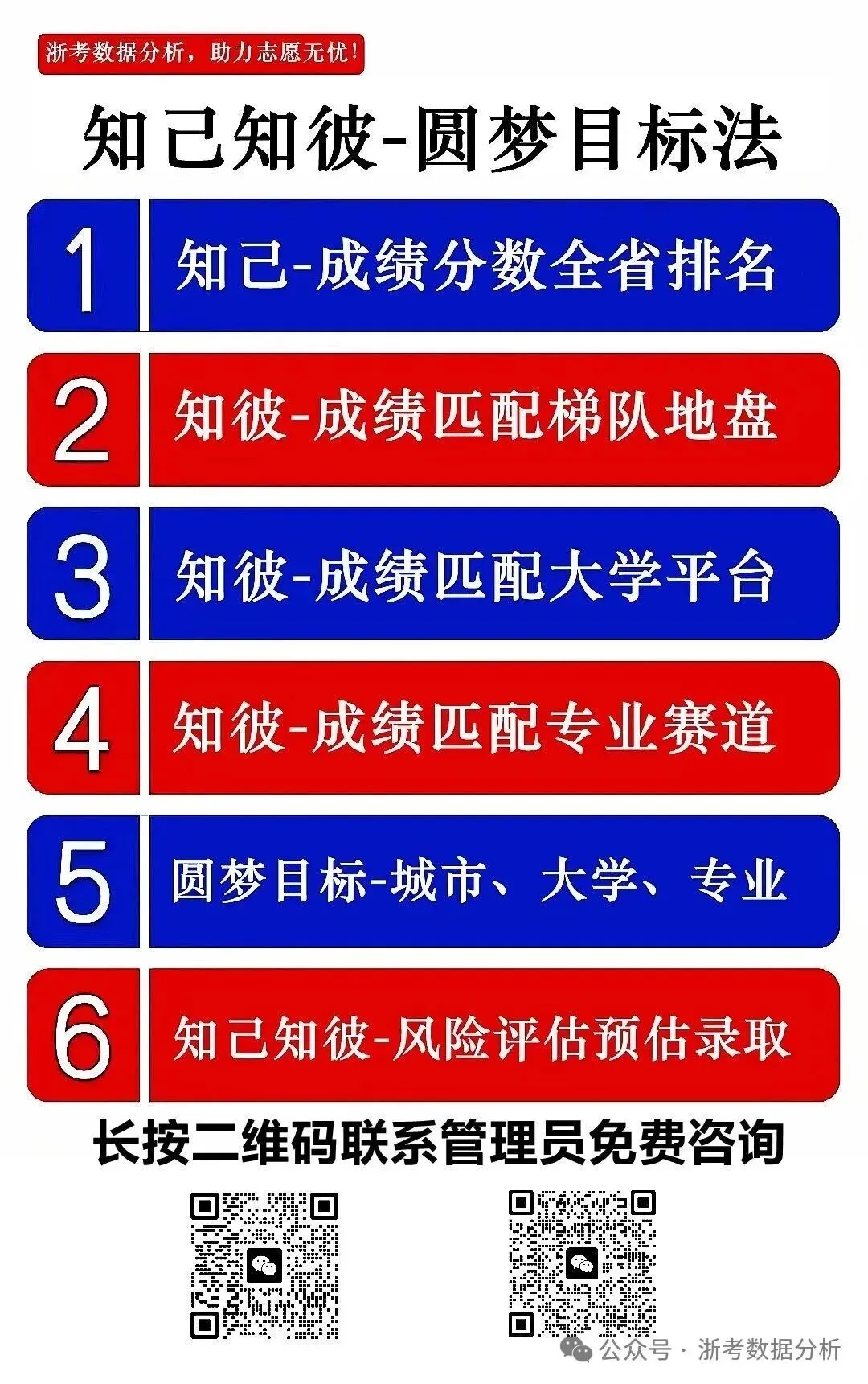 欢迎关注视频号《浙考数据分析》直播间每晚21:00,手把手教你复盘浙江高考数据及《知己知彼-圆梦目标法》,助你和孩子“知己知彼,百战百胜!”,轻松打赢志愿填报这场 “硬仗”!