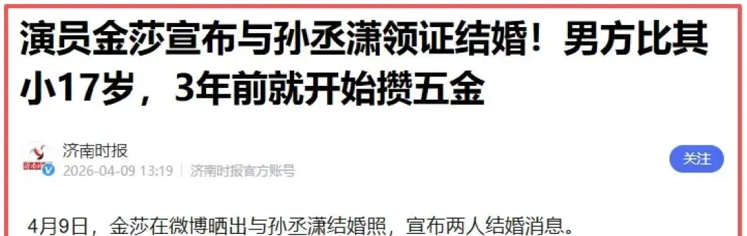 43岁“初恋脸女神”金莎,官宣嫁给26岁00后小鲜肉!年龄差17岁,全网炸锅——她为什么敢晒结婚照?为啥不躲不避?