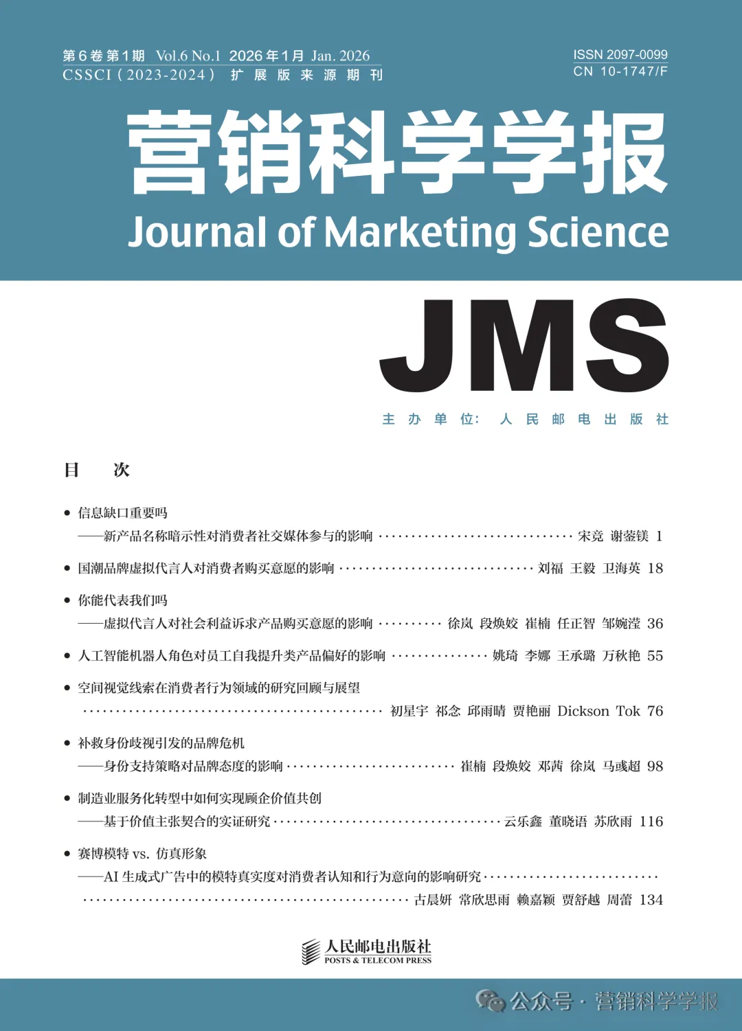 古晨妍, 常欣思雨, 赖嘉颖,等, 2026. 赛博模特vs.仿真形象——AI生成式广告中模特真实度对消费者认知和行为意向的影响研究[J]. 营销科学学报. 2026, 6(1): 134-152.