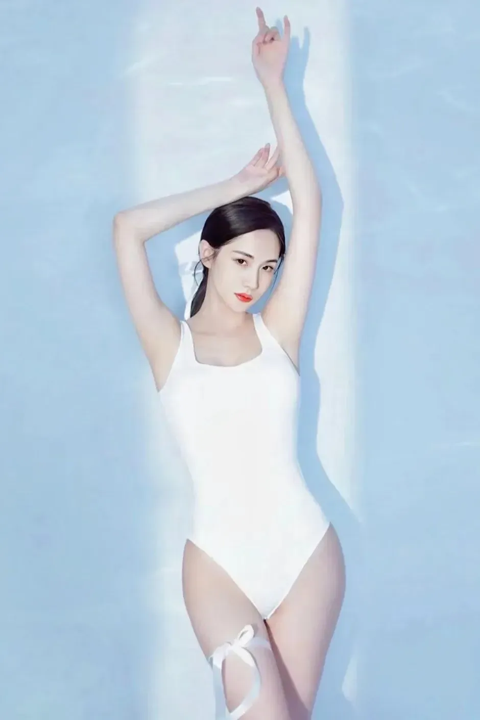 她身形比例优越,曲线流畅完美,该瘦的地方纤细紧致,该有曲线的地方丰满圆润,整体身材火辣撩人,堪称完美身材模板。