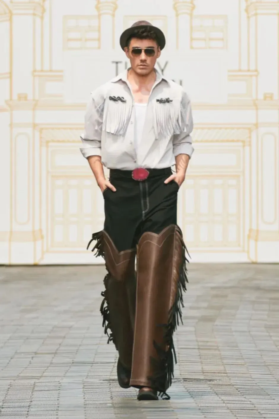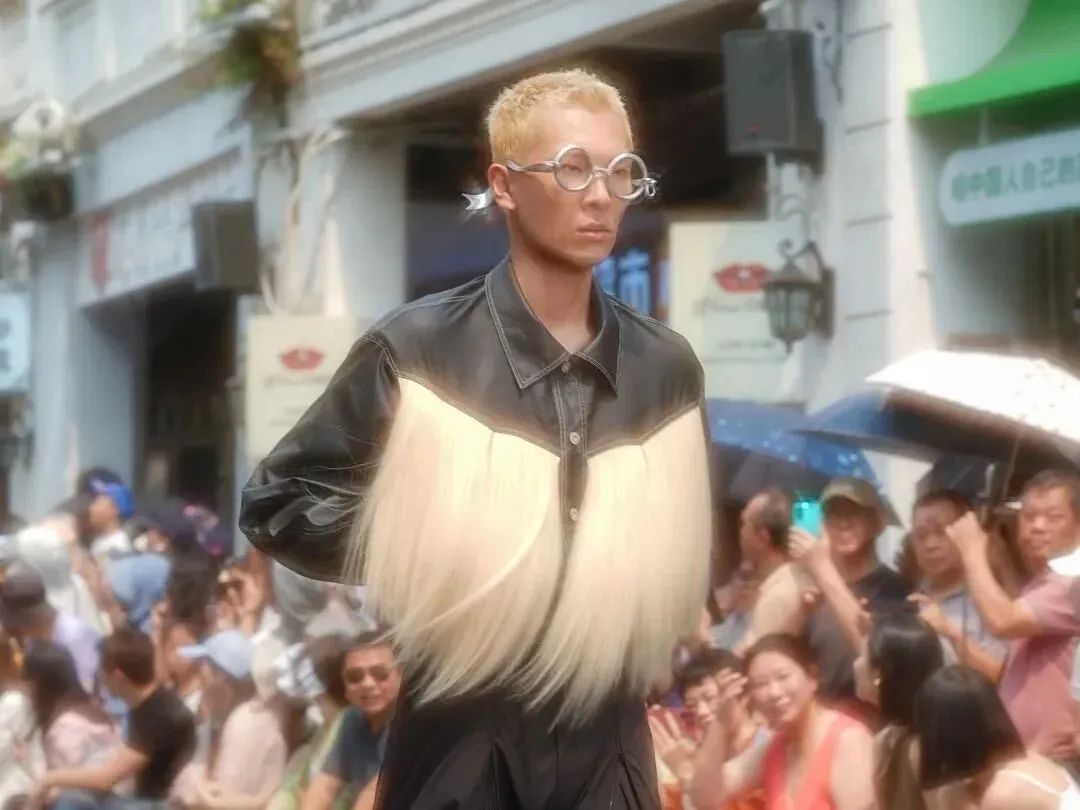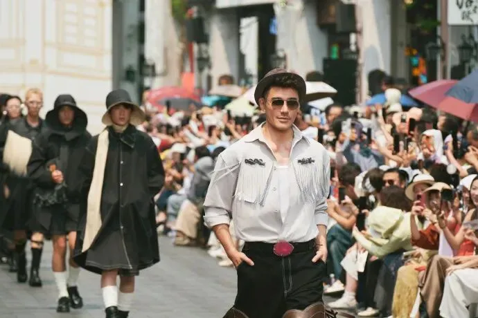 骑楼老街的复古氛围感拉满,滨海秀场的海风与裙摆齐飞,胡兵一亮相,直接把全场格调拉满。真就是那句话:法拉利老了也是法拉利,岁月在他身上只增质感,不减风华,不愧是行走的时尚教科书。