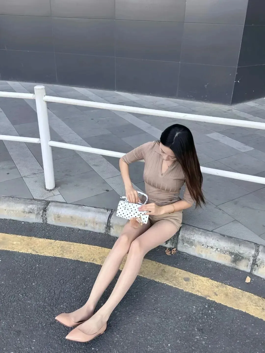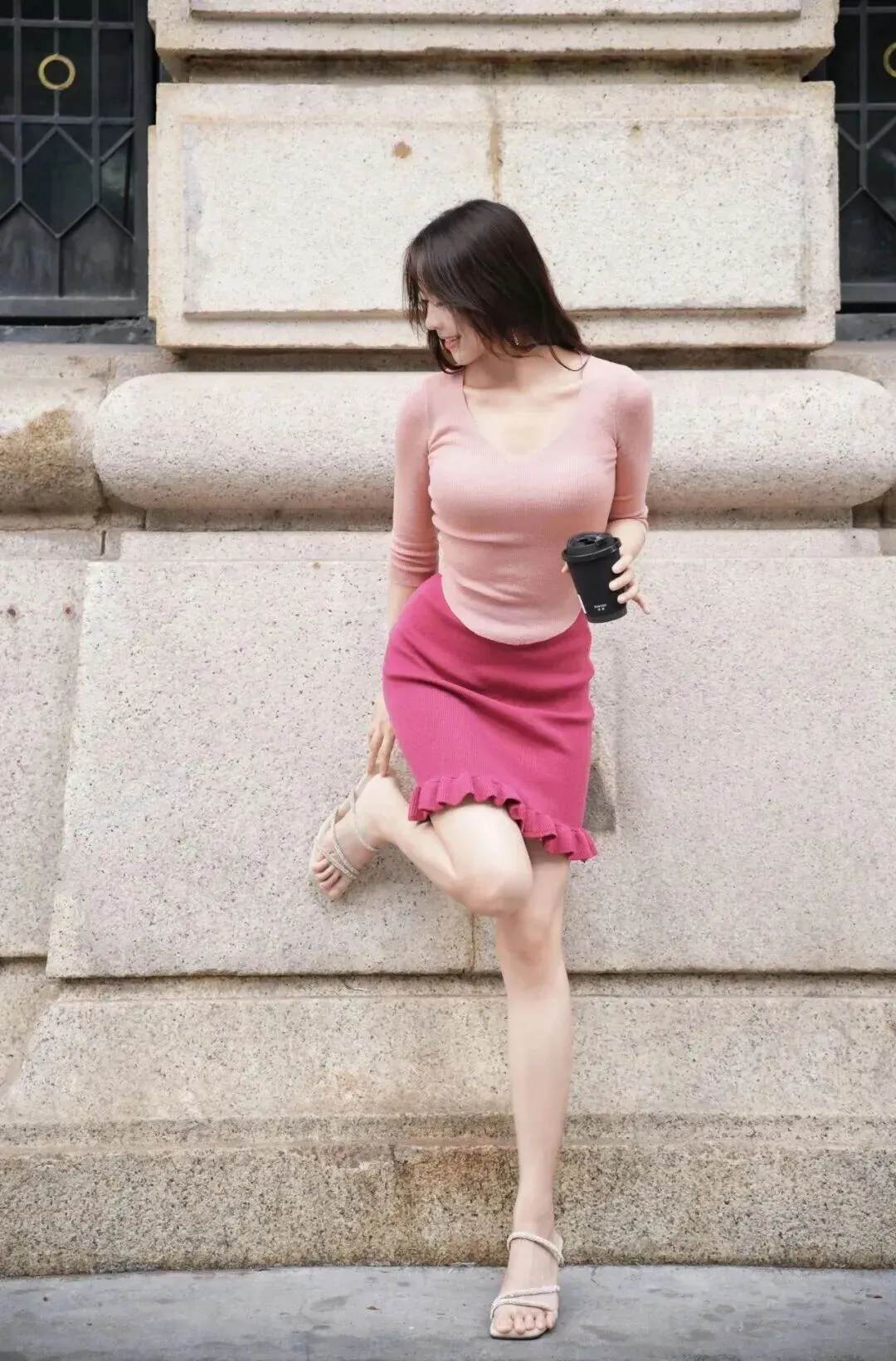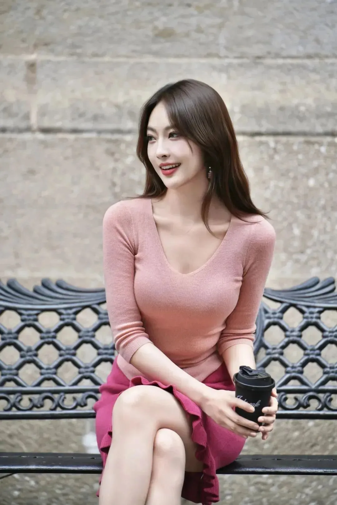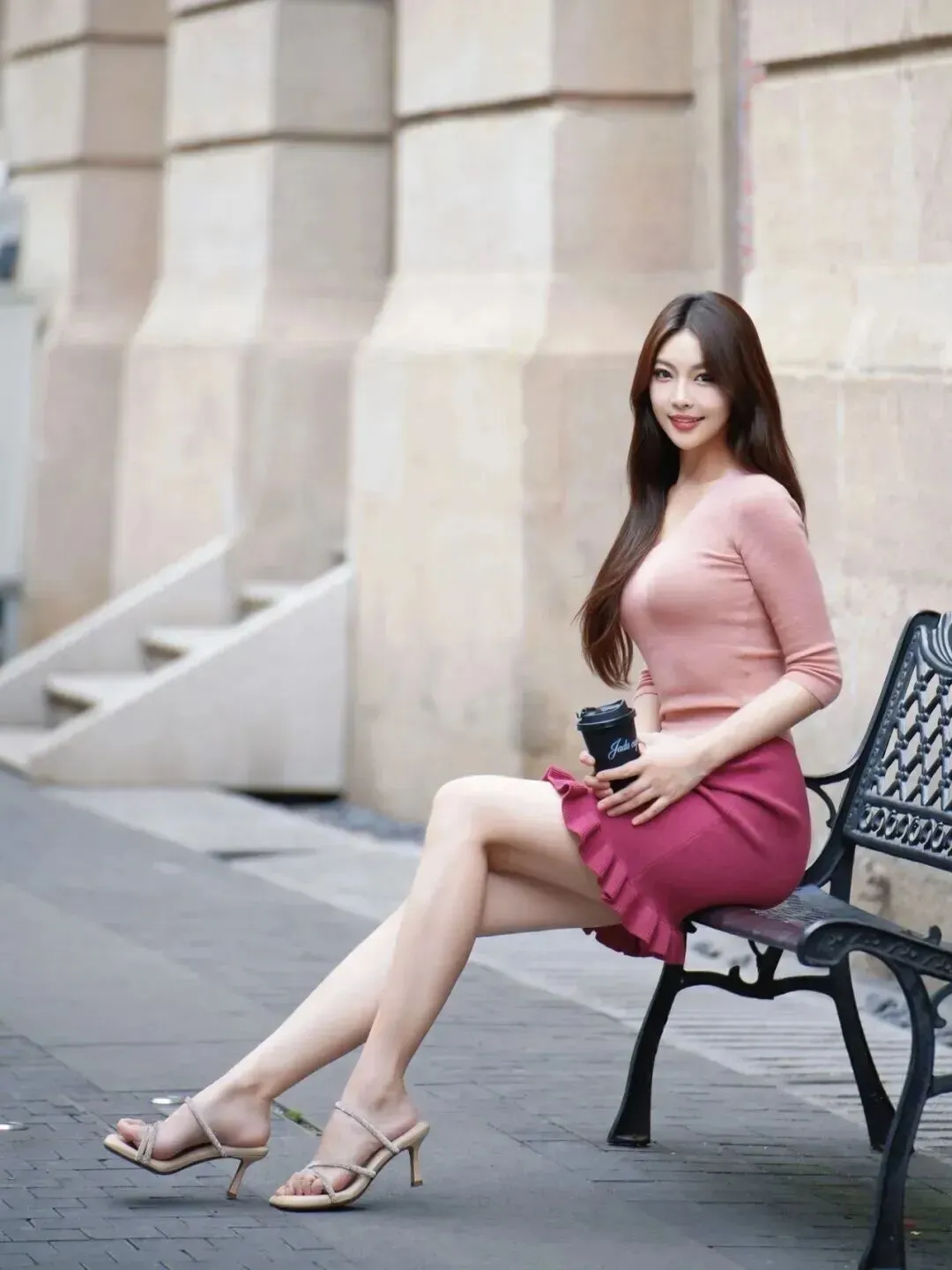 看着照片里这位小姐姐,粉嫩修身的上衣搭配荷叶边包臀裙,脚踩细高跟,手捧咖啡,坐在长椅上笑意盈盈,或者站在栏杆旁回眸一笑,简直就是行走的画报!📸 尤其是那条紧身短裙,勾勒出的不仅是身材,更是都市丽人的自信与优雅。