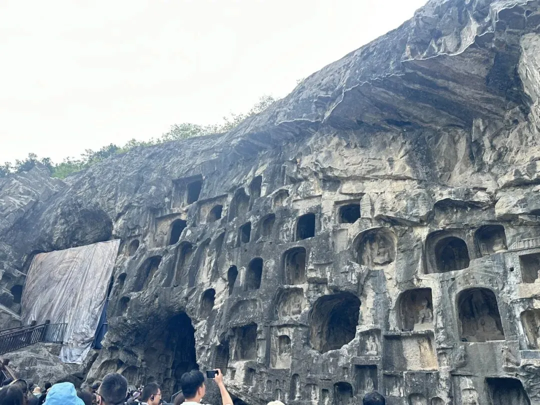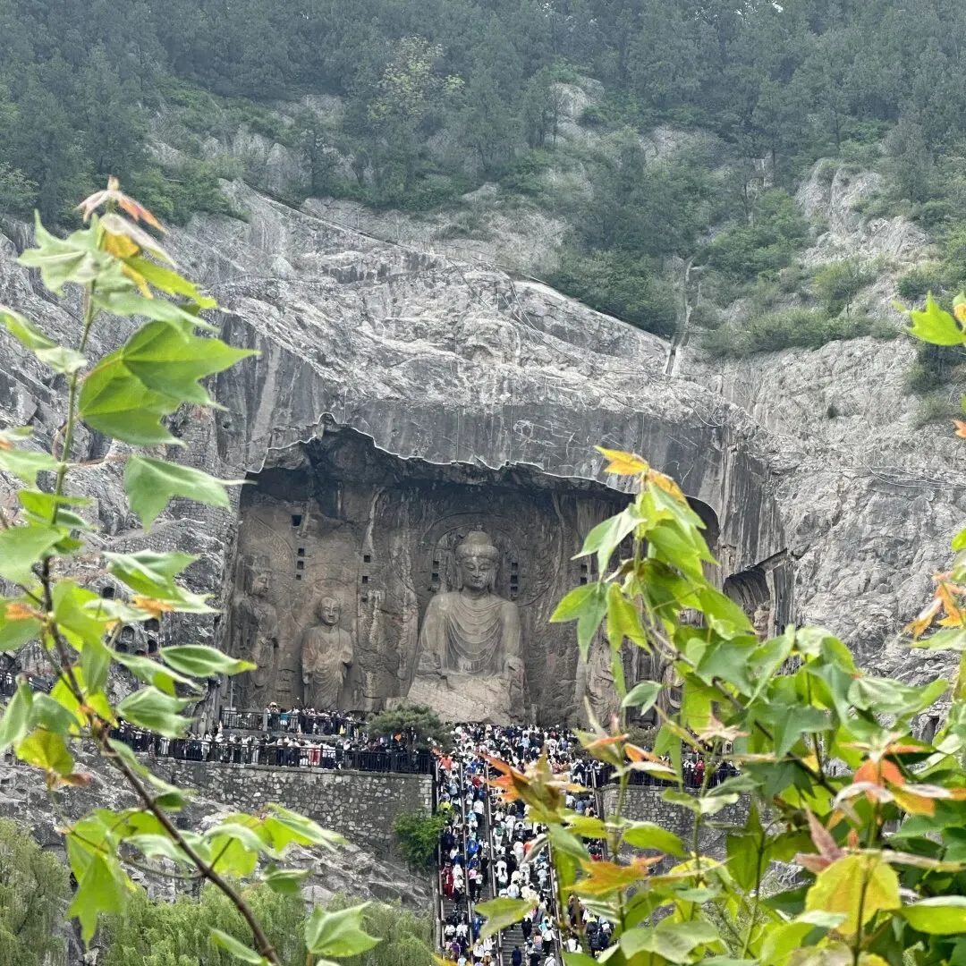 午后移步龙门石窟,伊水潺潺,两岸佛龛林立。卢舍那大佛含笑伫立,眉眼间藏着千年慈悲;造像衣袂飘逸,每一刀雕琢都凝结着古人的智慧与匠心。行走石窟之间,仿佛穿越时光长廊,与千年文明隔空对话,震撼与敬畏在心底悄然生长。