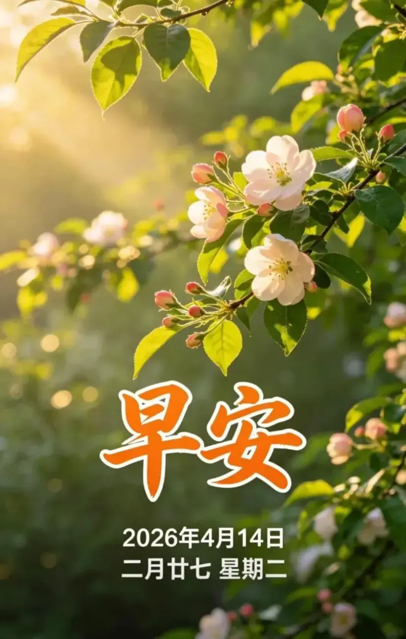 2026年4月14日,周二早安。愿你在平凡的这一天,收藏一滴露水的清澈,听见一朵花开的声音——人间四月,万物温柔。