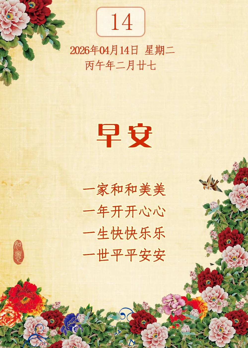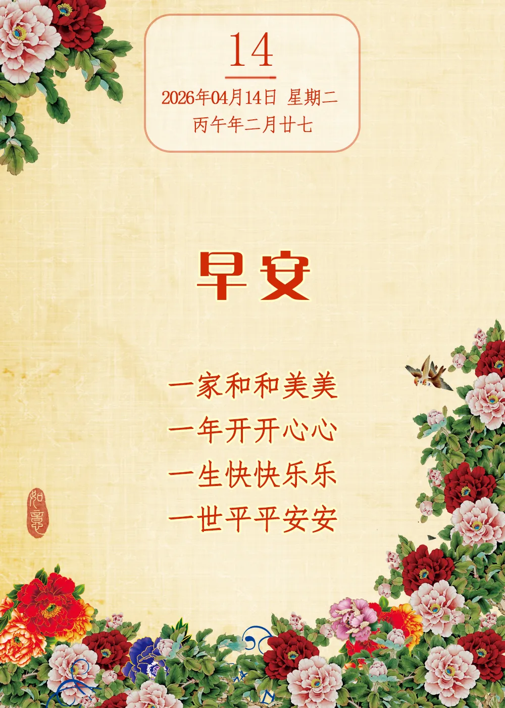 当前位置:首页>美女资讯>2026年4月14日 早安祝福问候图片