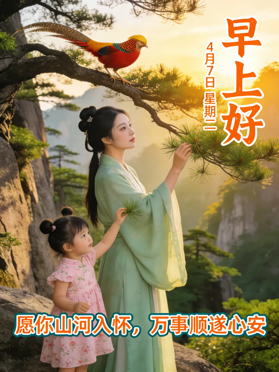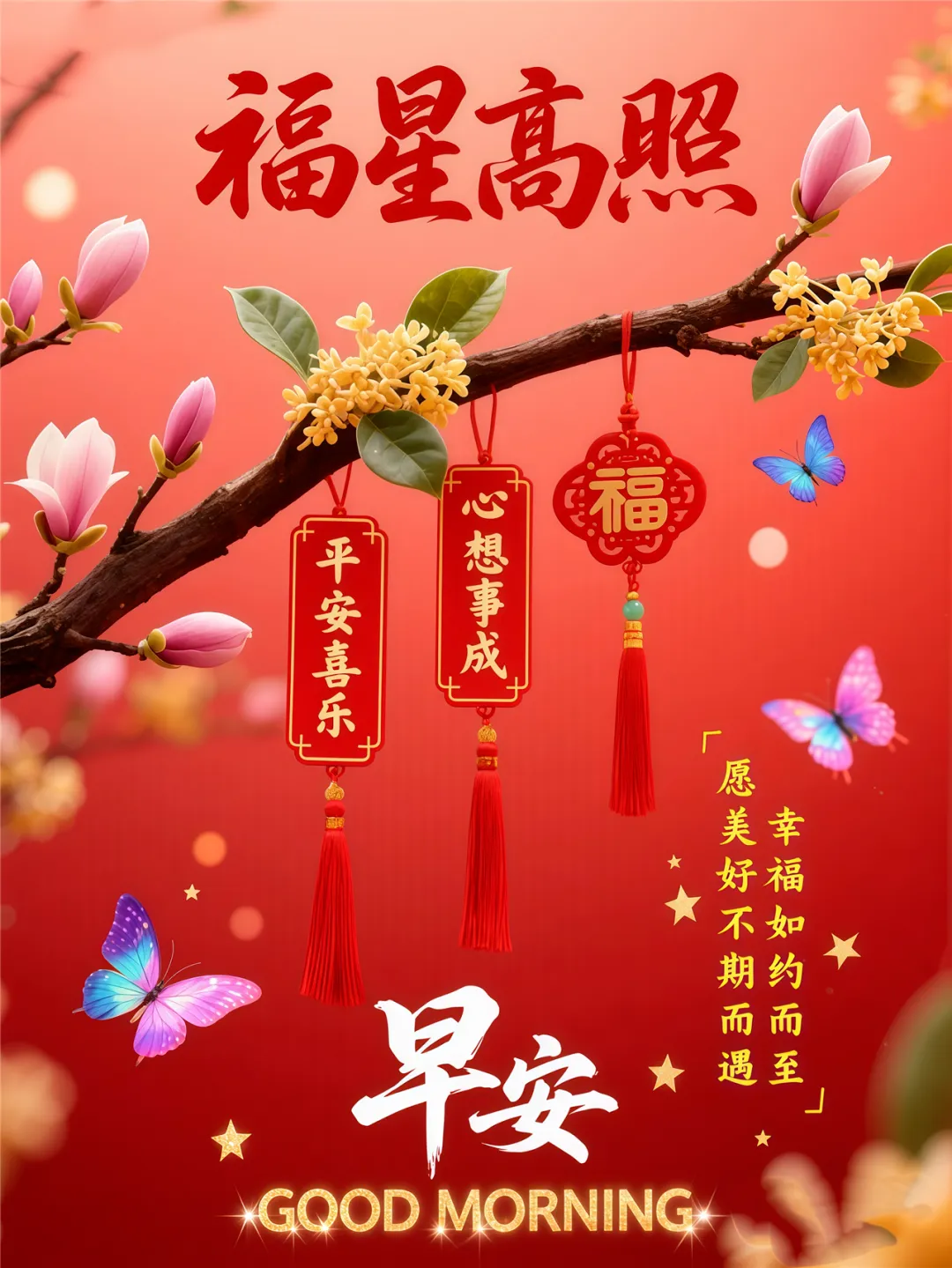 晨光初露映吉祥,福寿安康伴身旁;岁岁平安好运至,日日欢喜体康强;愿得人间皆如意,春风拂面笑脸扬。🌹🙏❤️🌞🌺🎉‍