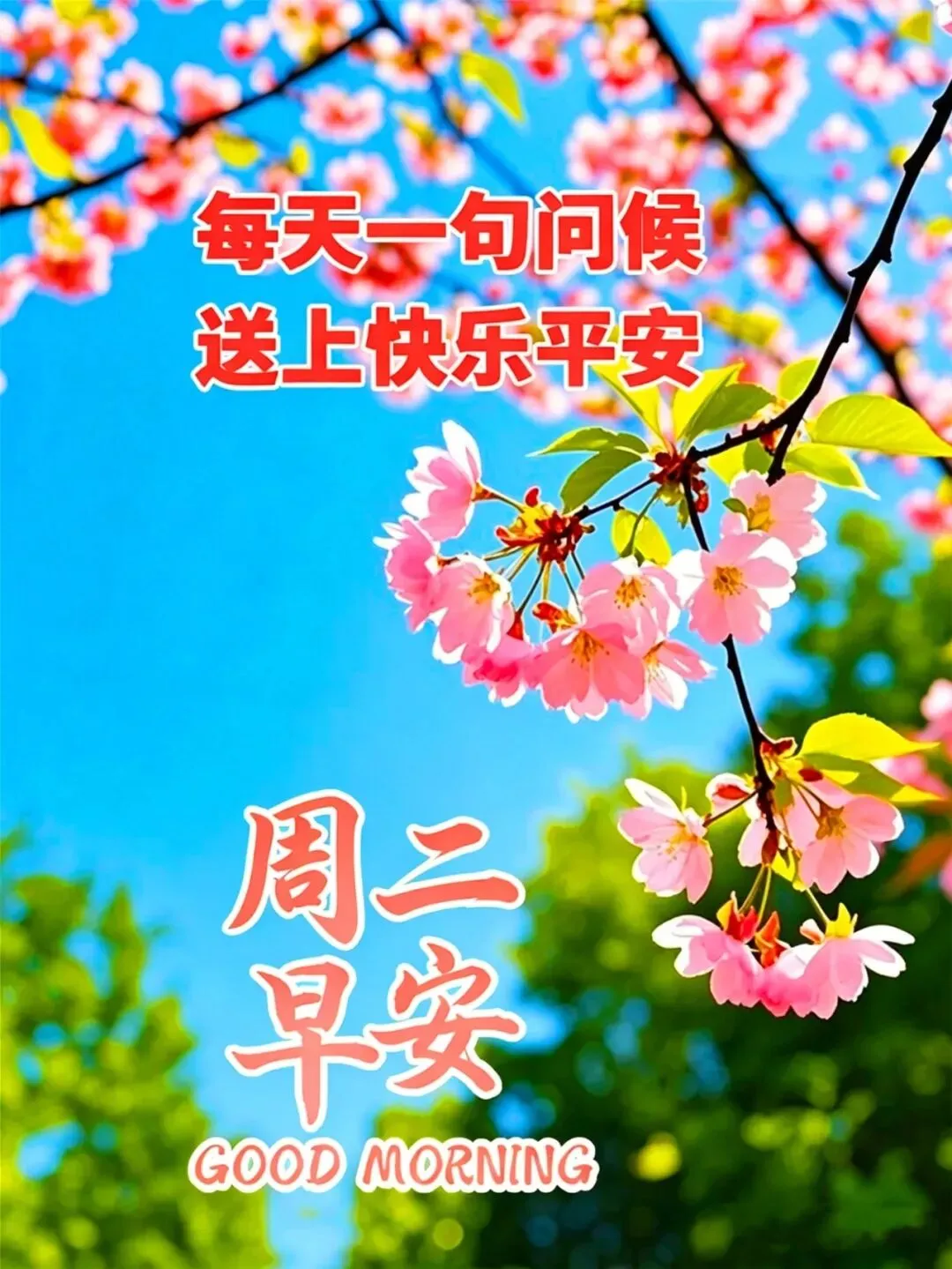 美好一天又来到,开心快乐最重要!愿幸福快乐随行、健康平安围绕、一切顺利皆好!祝你开心快乐!周二早安愉快!