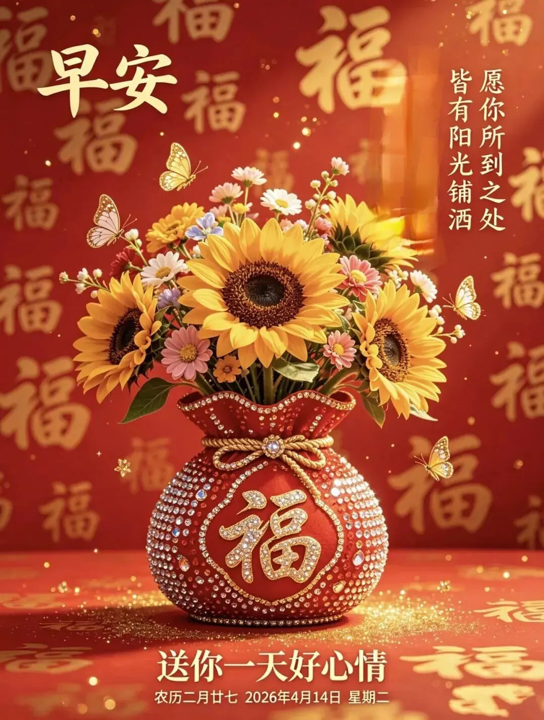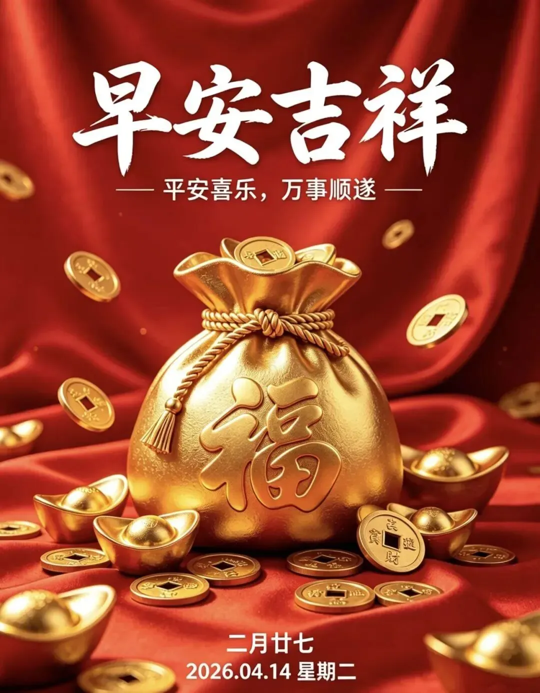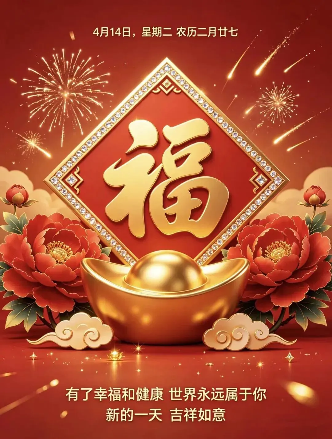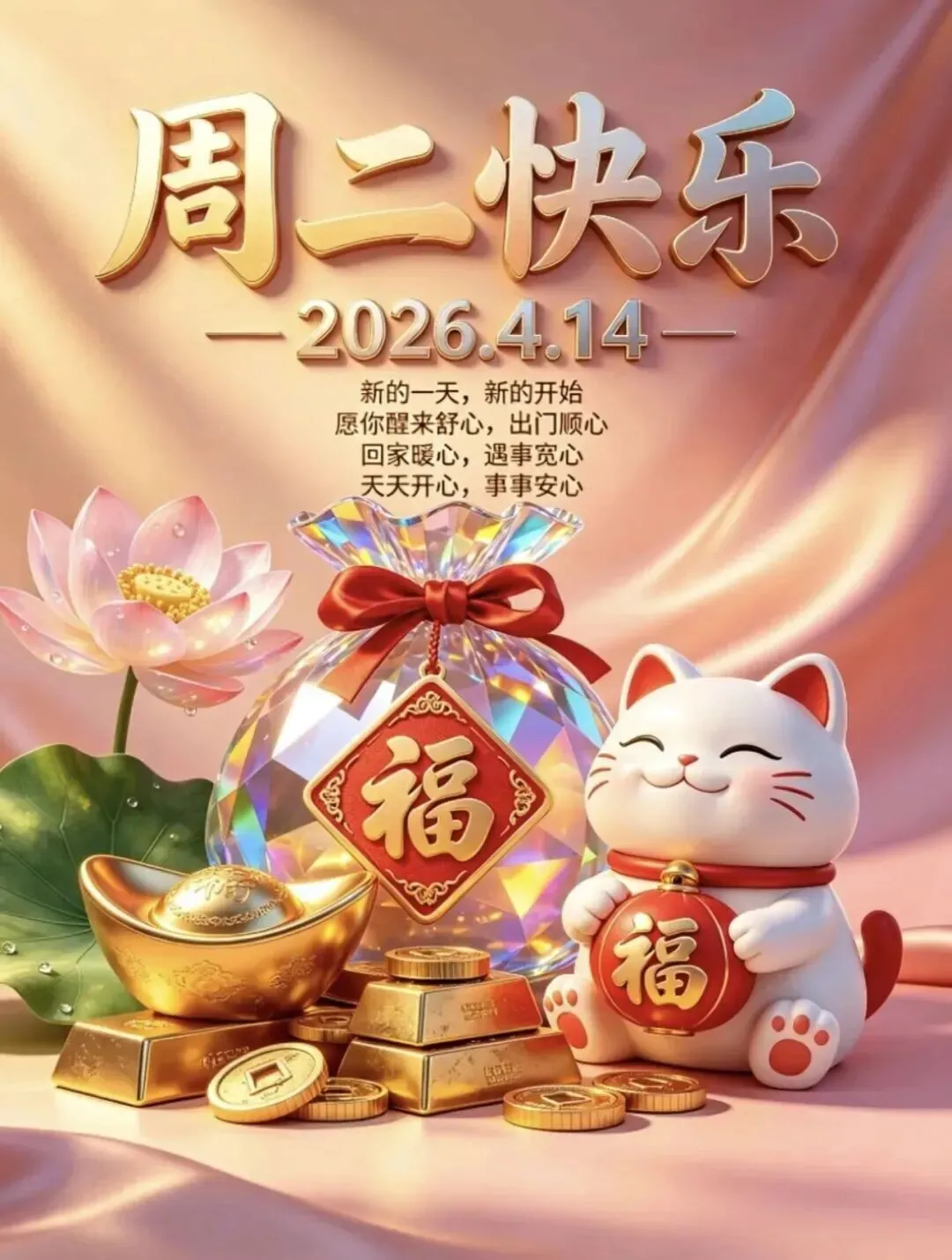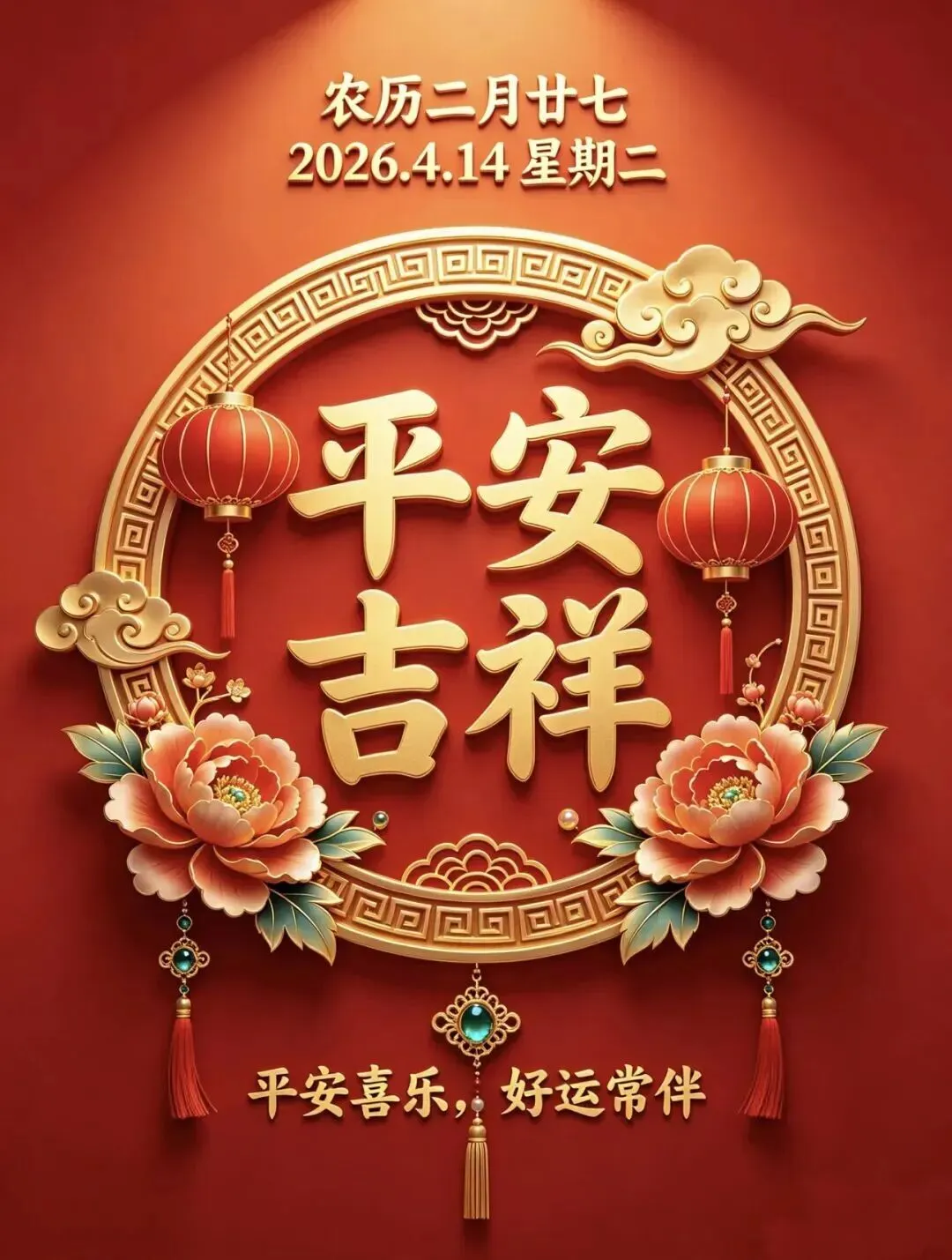 4月14日|周二早安祝福图片,一声早安,总愿您幸福平安,早安吉祥!